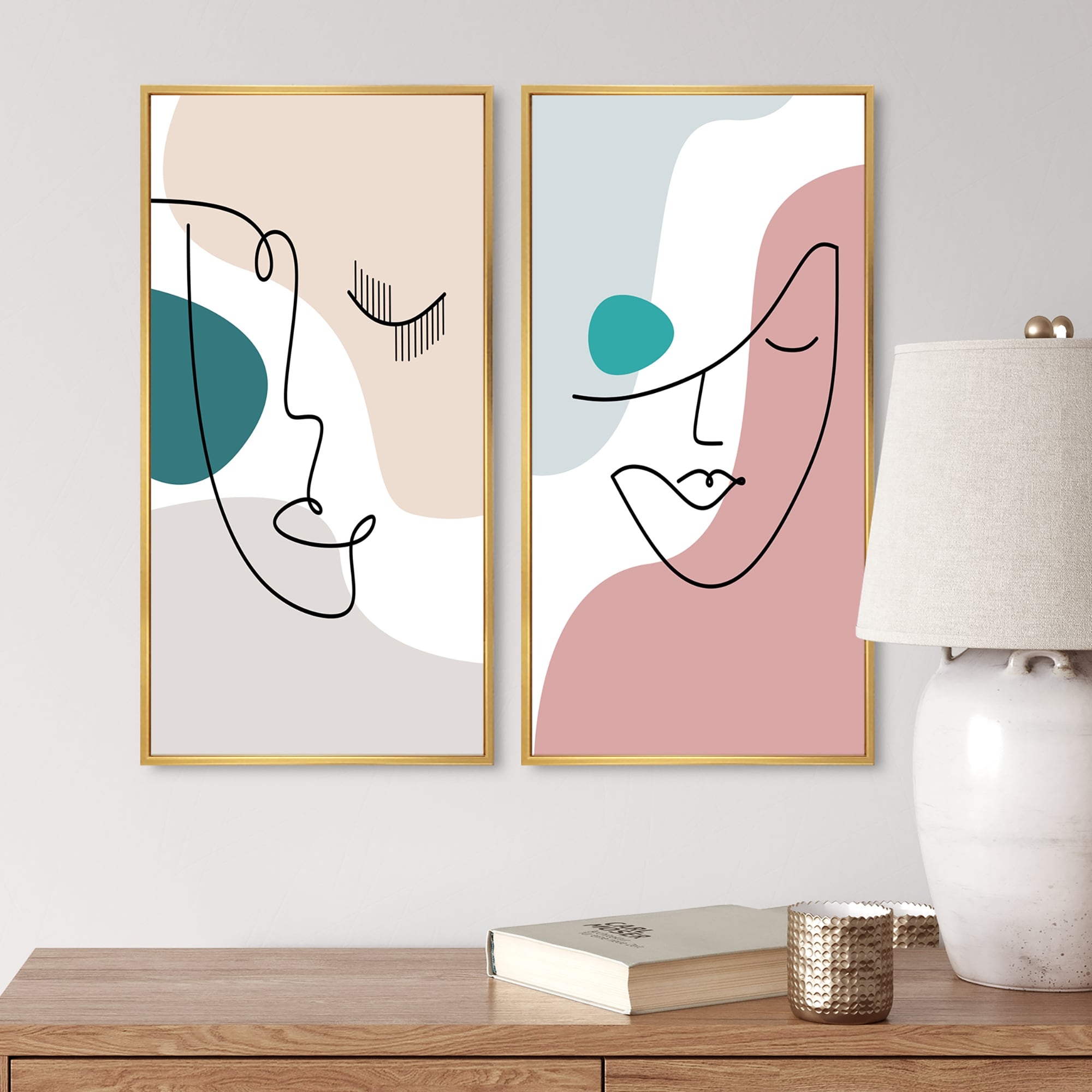 Designart "Contemporary Line Art Face I" Portrait Framed Art Set of 2 Pieces