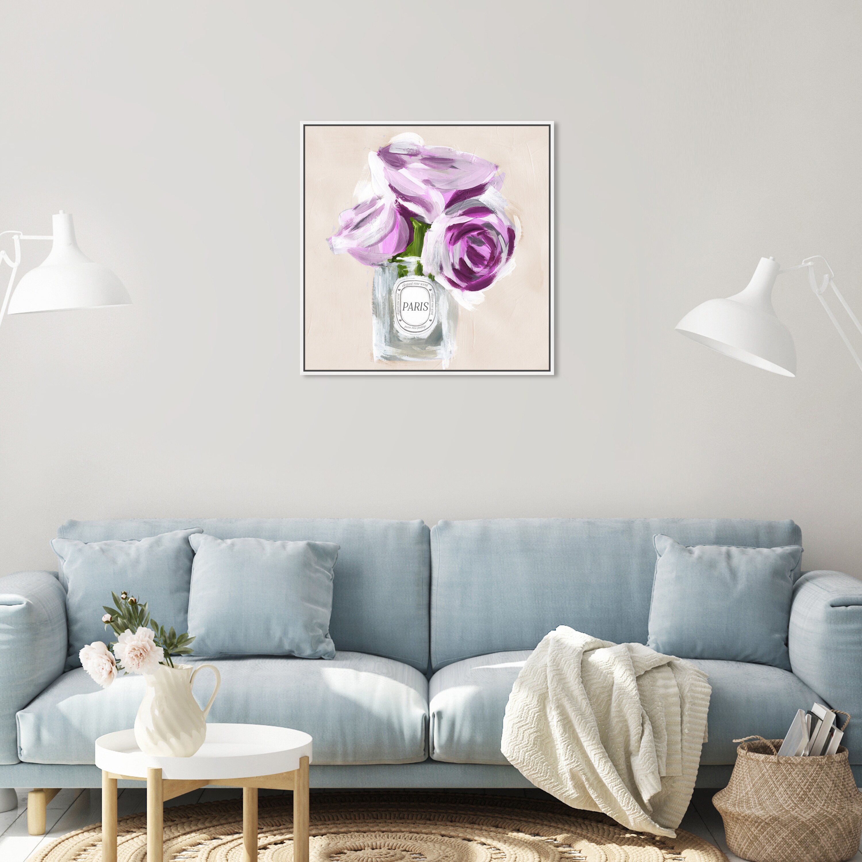 Oliver Gal 'Paris Rose Scent Ivory' Floral and Botanical Wall Art Framed Canvas Print Florals - Purple, White