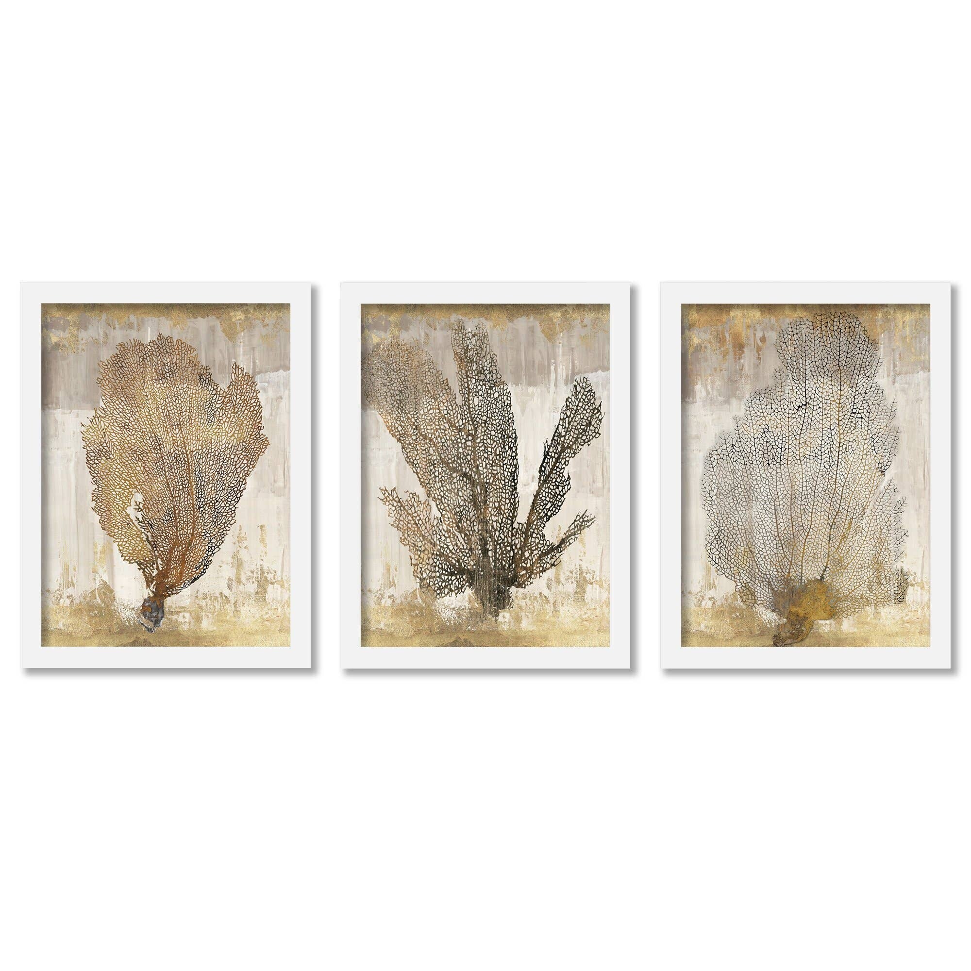 Gold Coral PI Creative Art Coastal - 3 Piece Framed Gallery Art Set