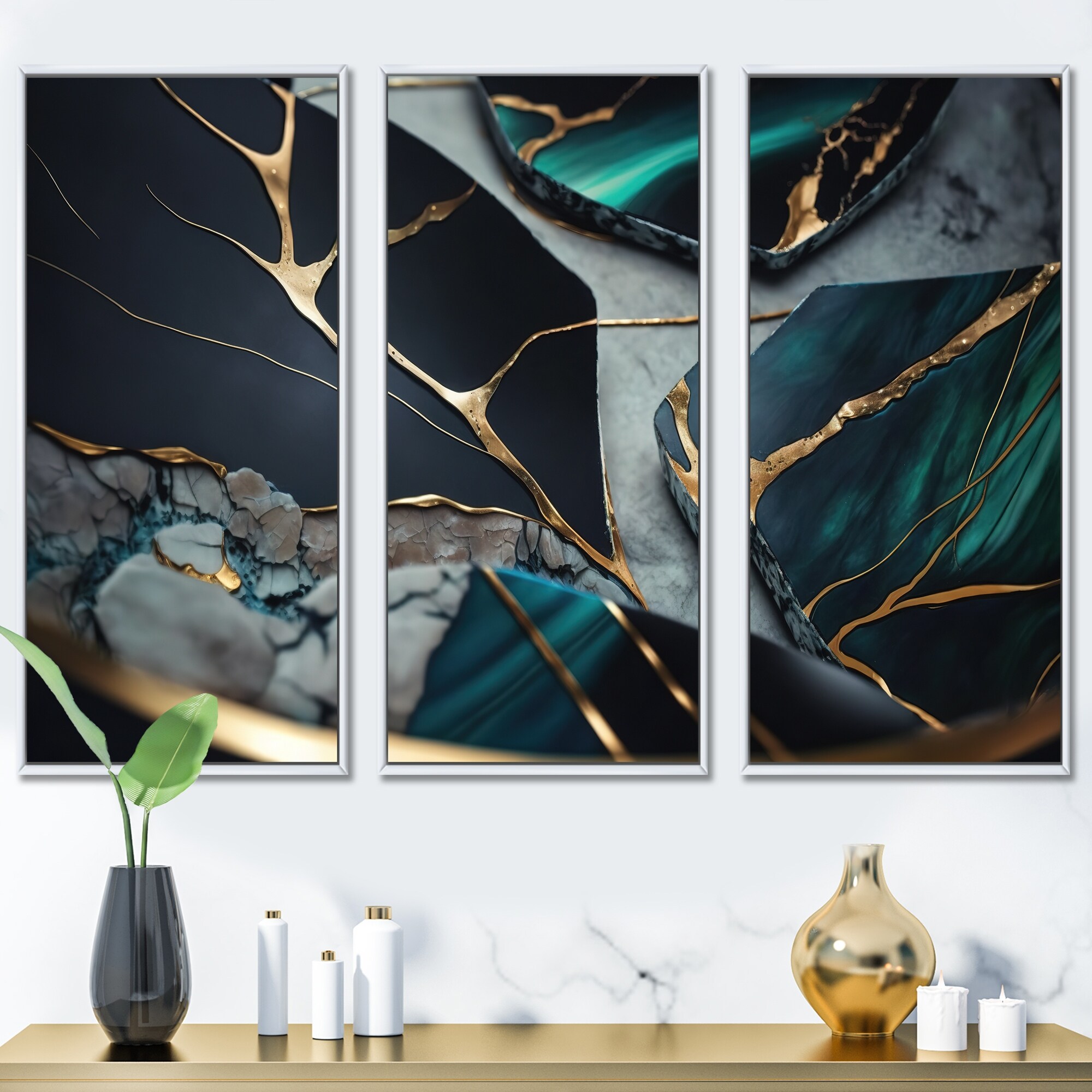 Designart "Abstract Geode Green II" Abstract Marble Framed Canvas Art Print - 3 Panels