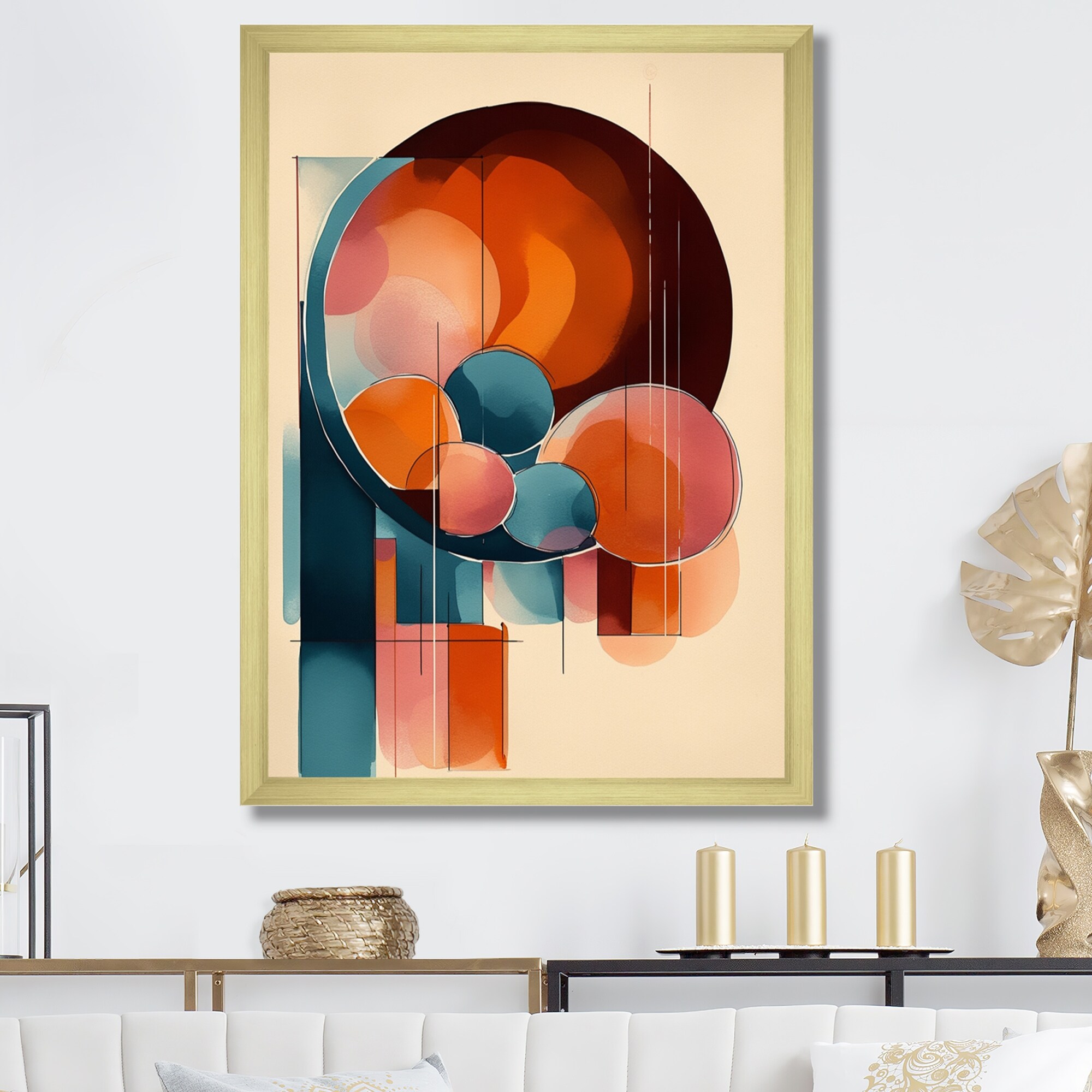 Designart "Abstract Shapes And Line Artwork Ii" Abstract Framed Wall Art for Living Room