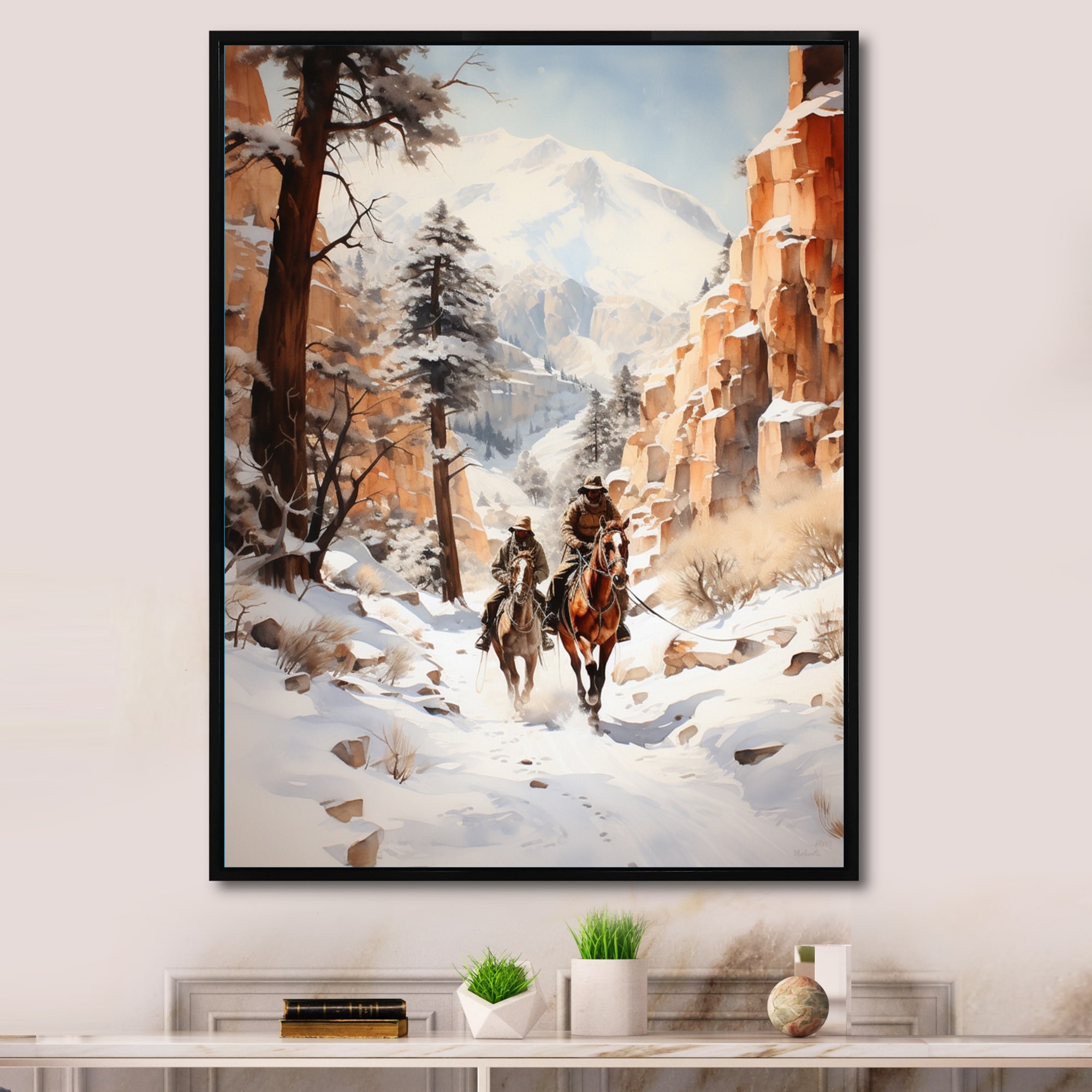 Designart "Cowboy On the Trail II" Cowboys Framed Canvas Wall Art
