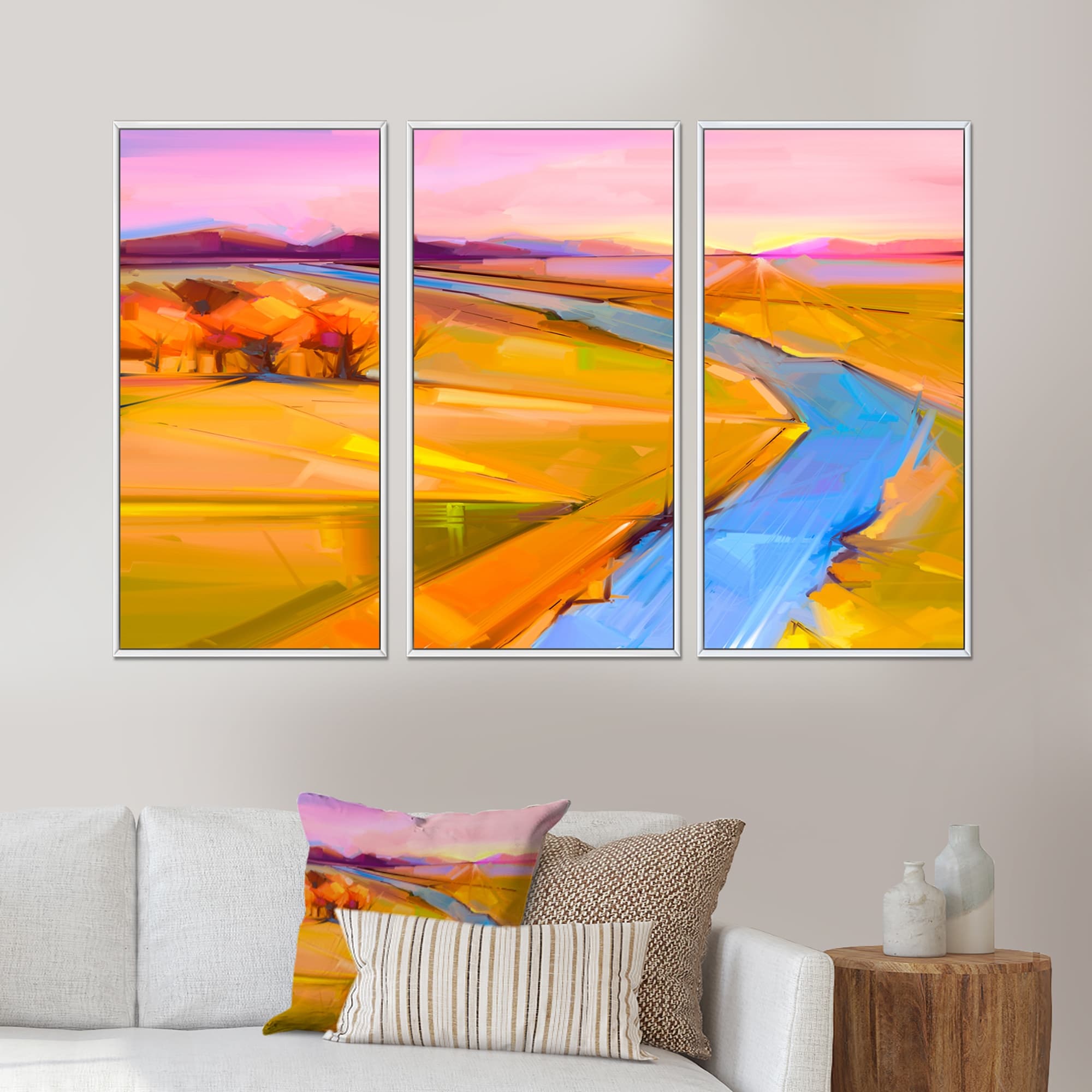 Designart "Impressionist Mountainscape With River III" Farmhouse Framed Artwork Set of 3 - 4 Colors of Frames