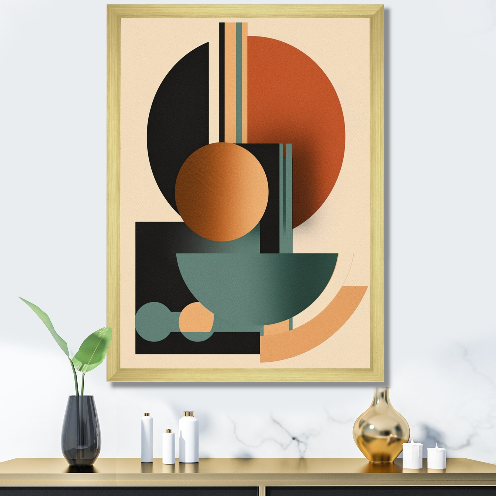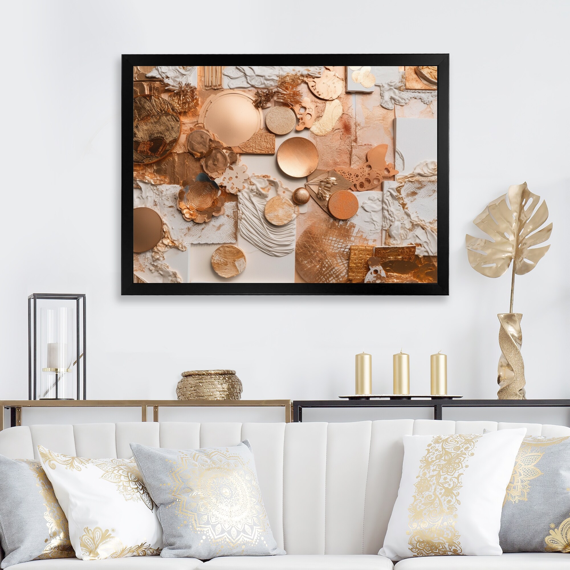 Designart "Gold And White Geometric Serenity I" Modern Geometric Framed Wall Art Prints