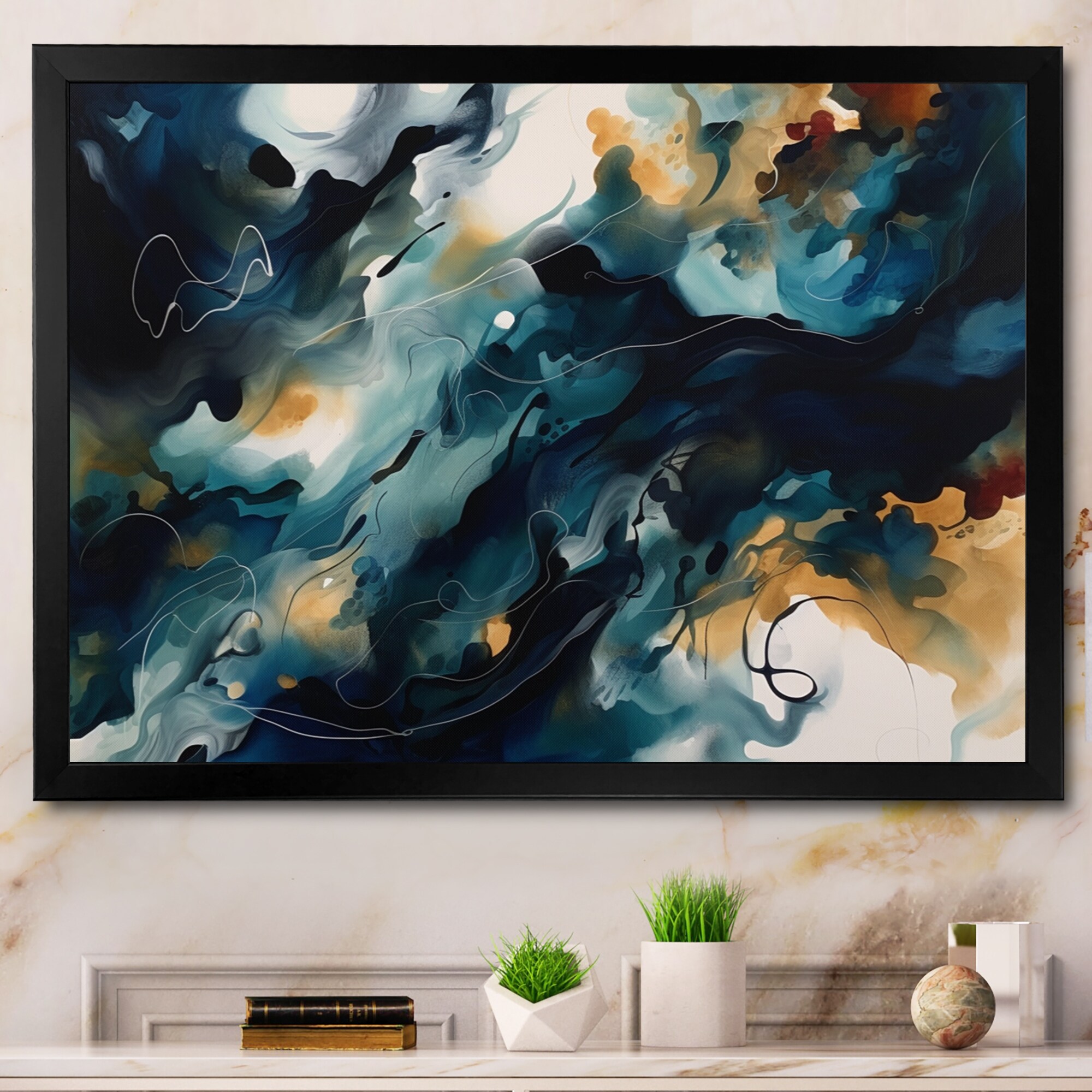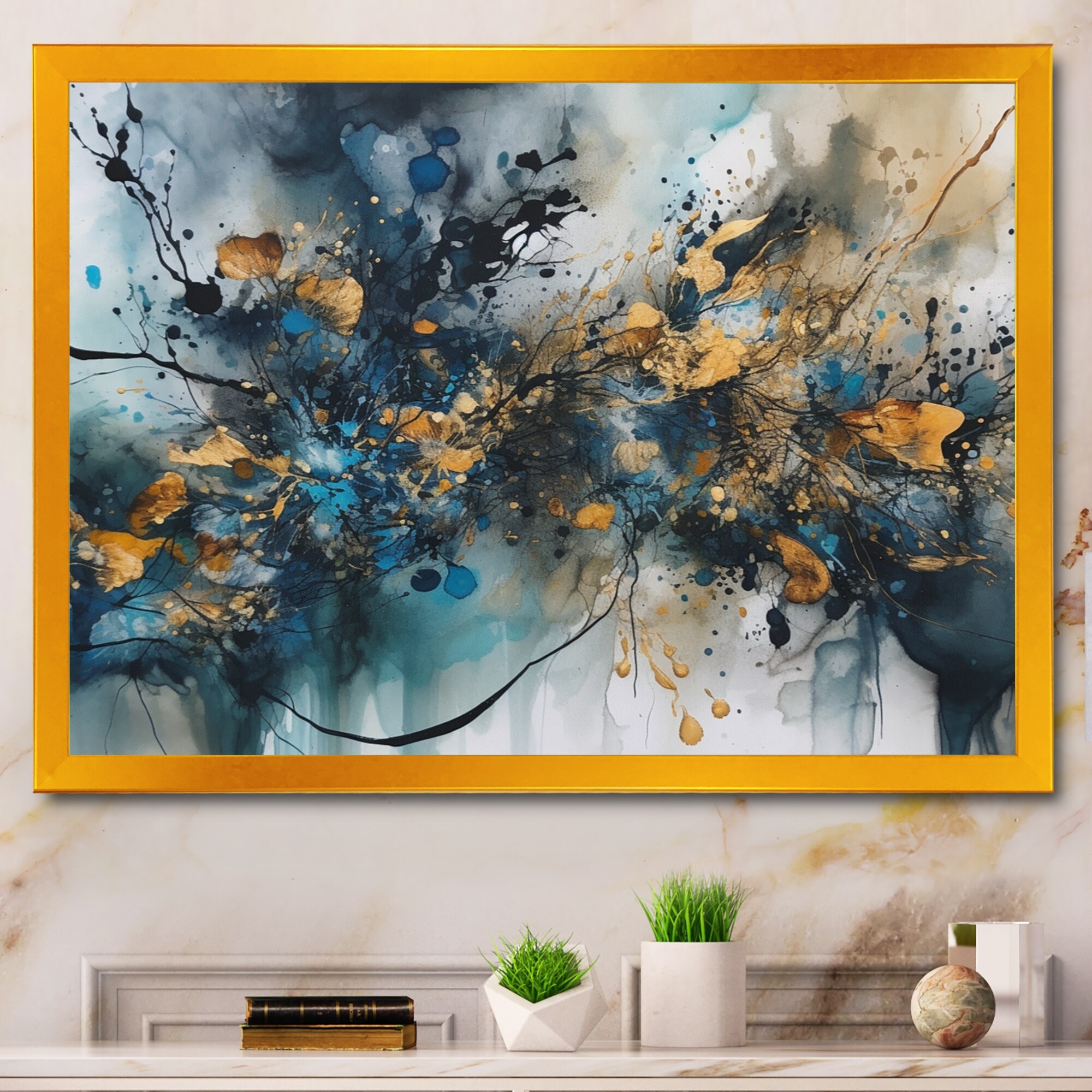 Designart "Blue Gold Captivating Liquid Ink" Abstract Marble Framed Wall Decor
