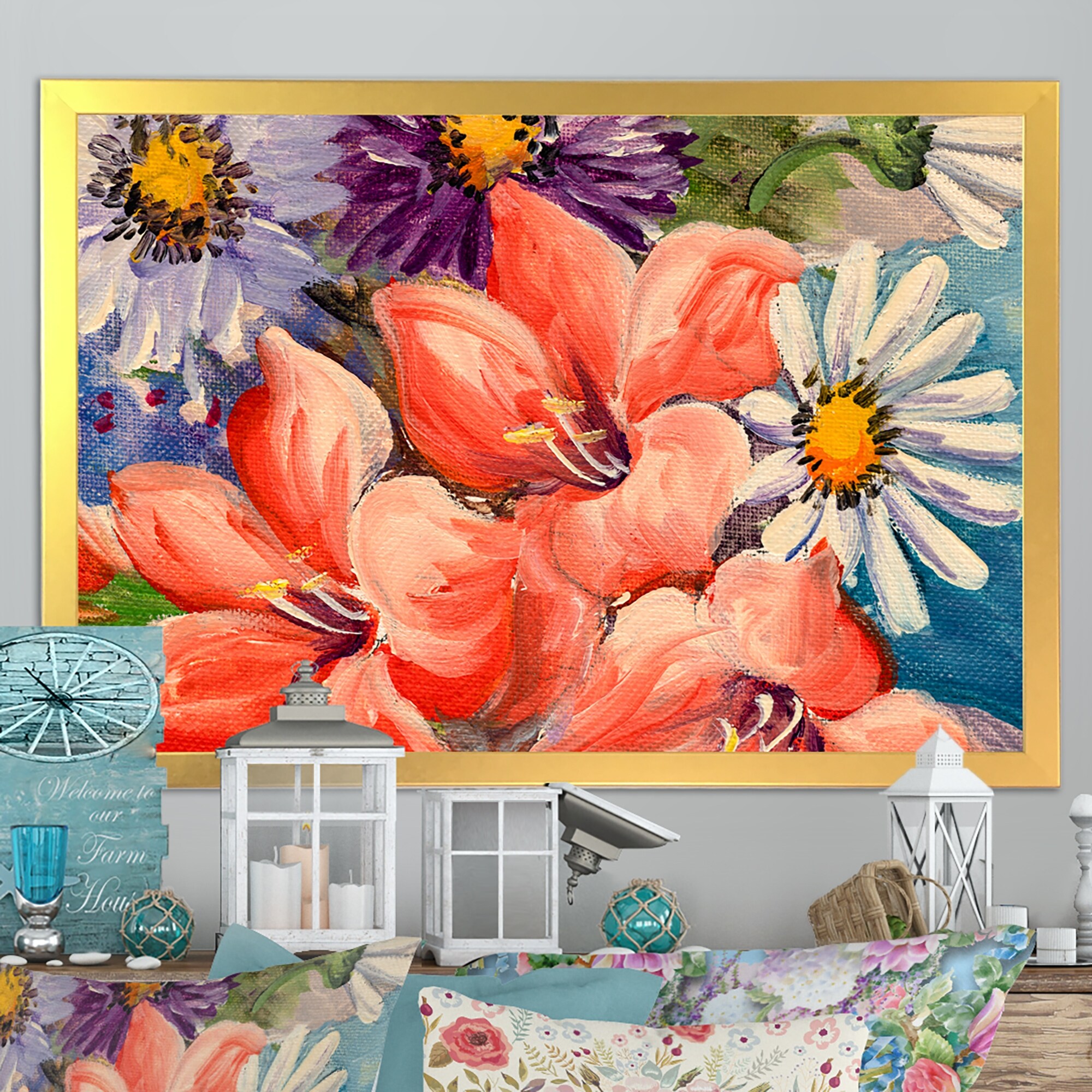 Designart "Vintage Bouquet of Blossoming Wildflowers" Traditional Framed artwork