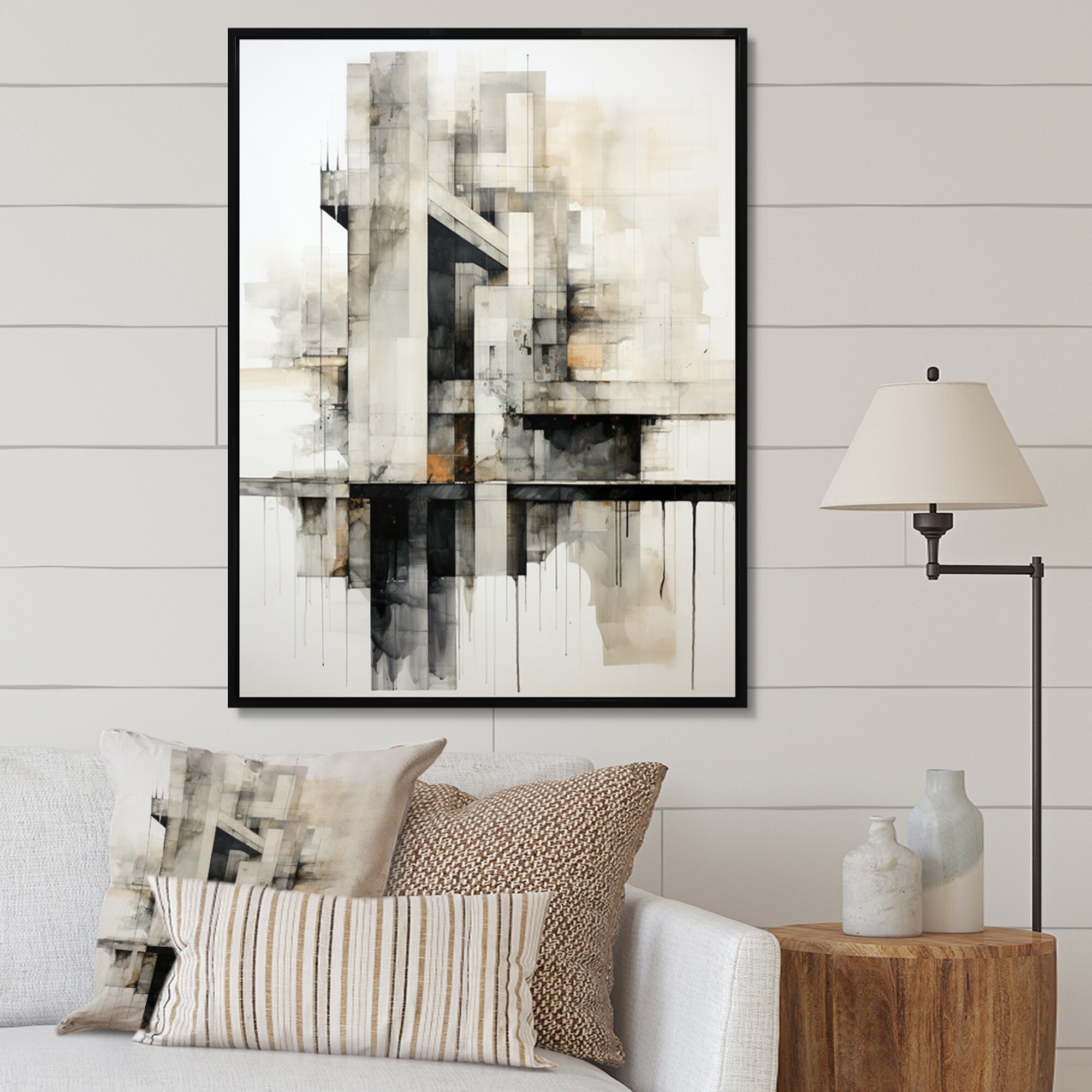 Designart "Grey Bridge Minimalistic Connection I" Bridges Framed Canvas Prints