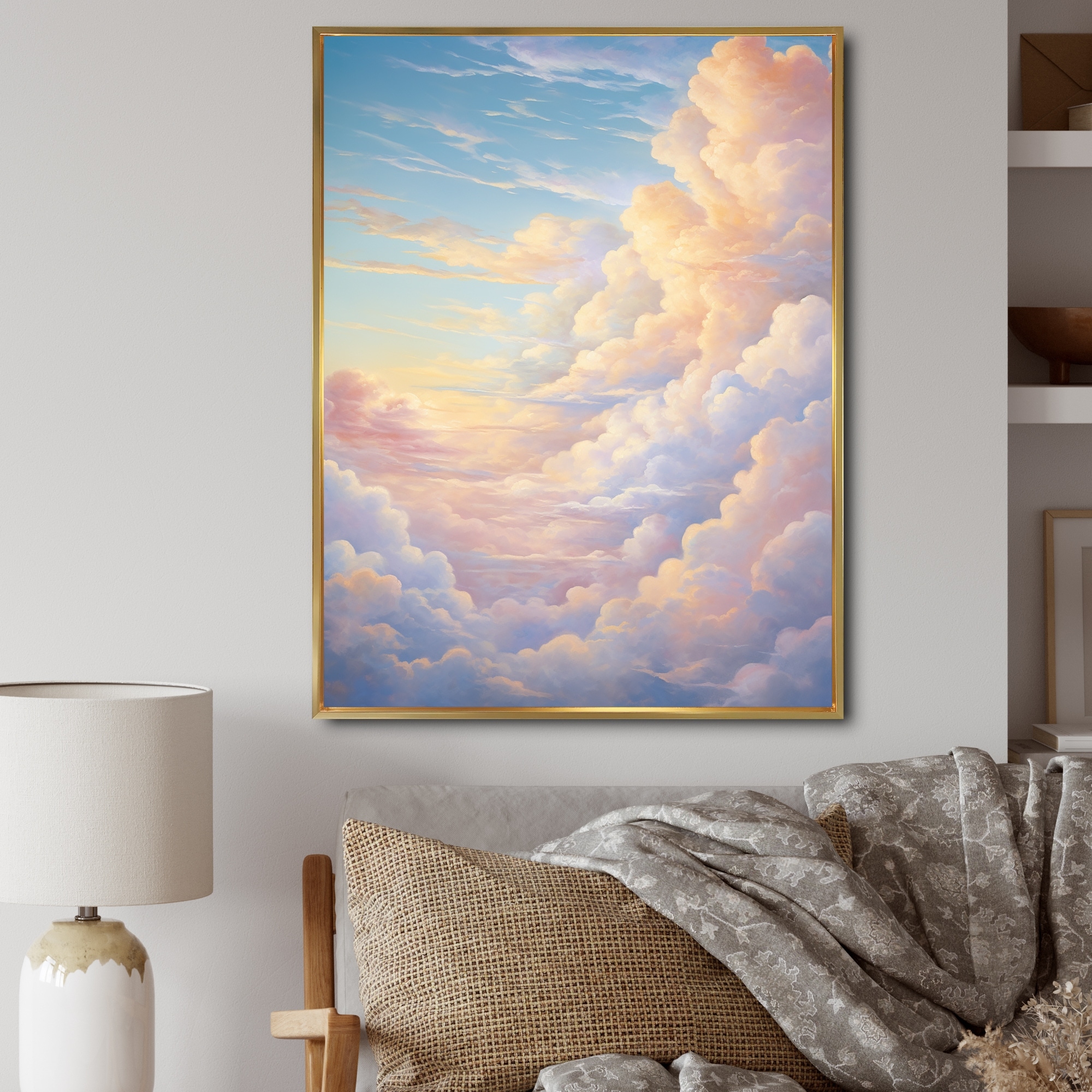 Designart "White Sky Pure Elegance VI" Sky Framed Wall Art Living Room