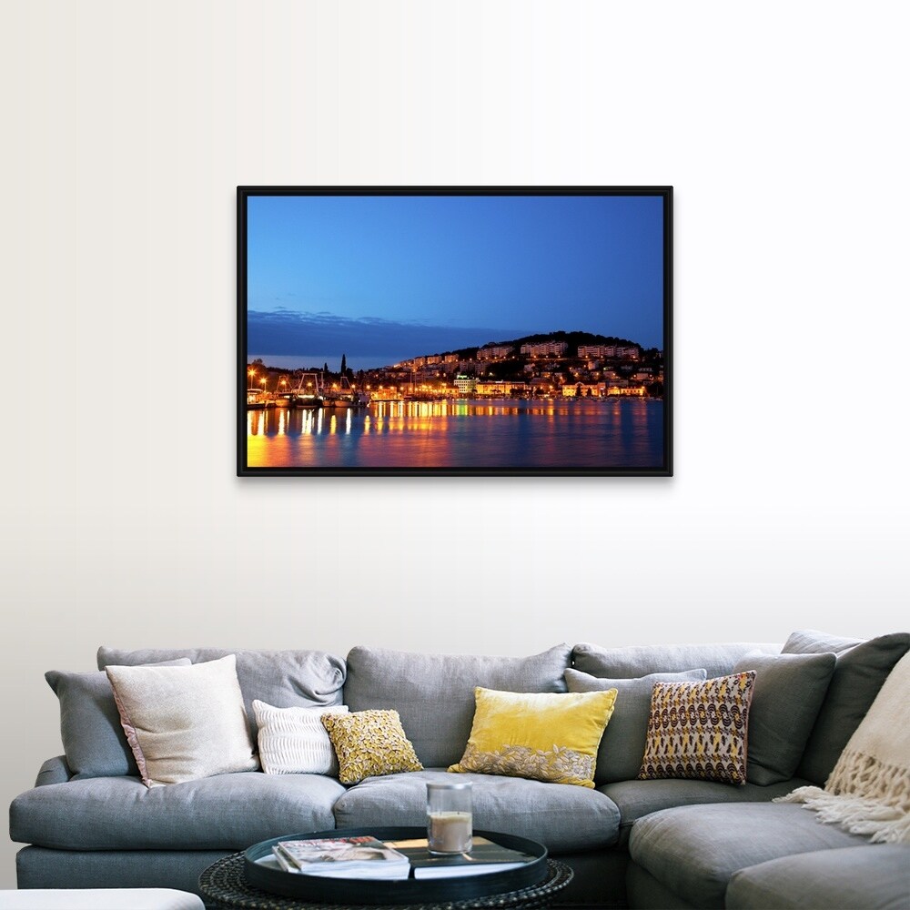 "Port Gruz at Night" Black Float Frame Canvas Art