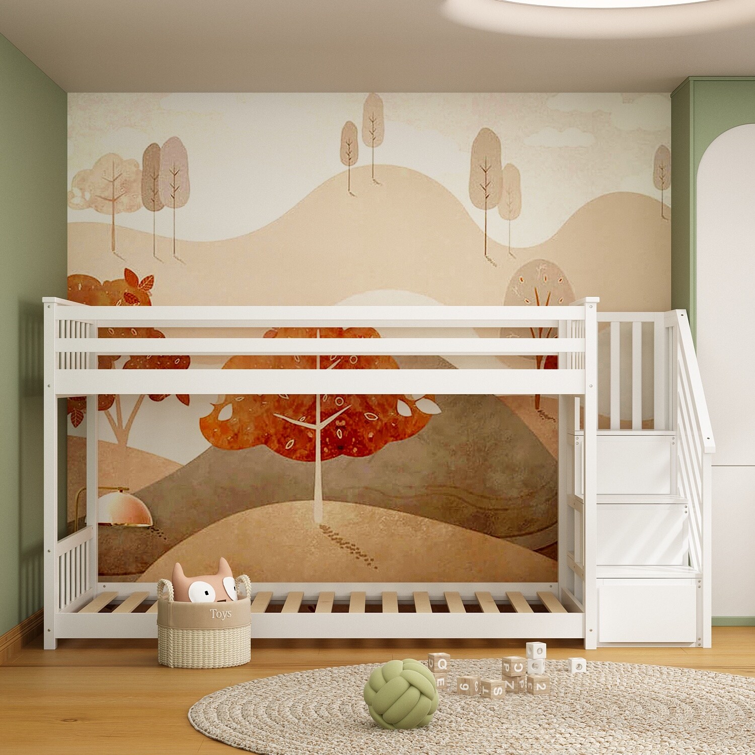 Wooden Solid Construction Twin/Twin Bunk Bed with Storage Staircase with slides.