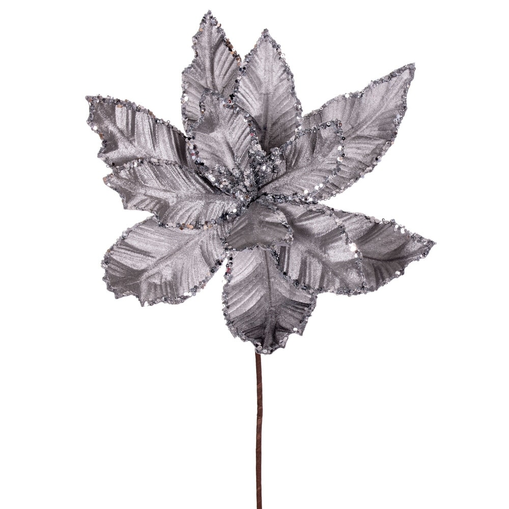 Vickerman 24" Silver Velvet Sequin Trim Poinsettia, 3 per bag.