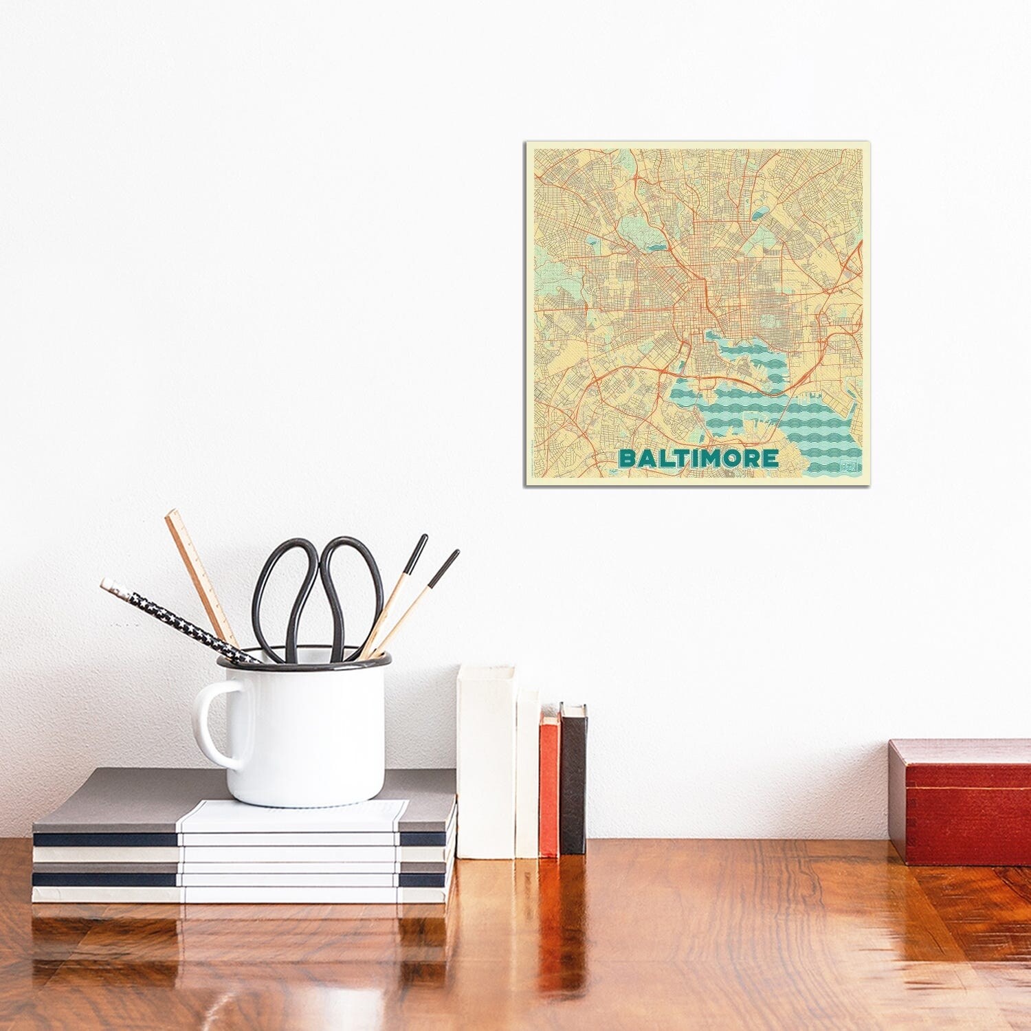 iCanvas "Baltimore Retro Urban Blueprint Map" by Hubert Roguski Canvas Print