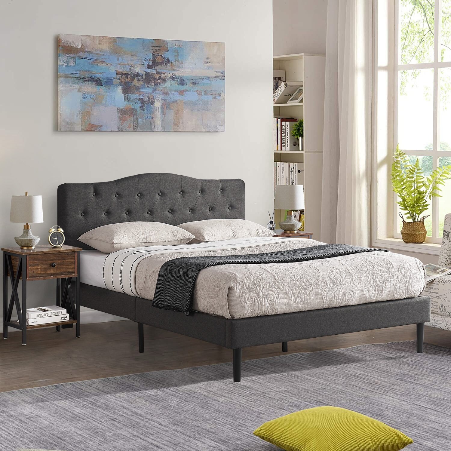 Taomika 3-Pieces Bedroom Sets with Adjustable Height Upholstered Dark Grey Bed Frame