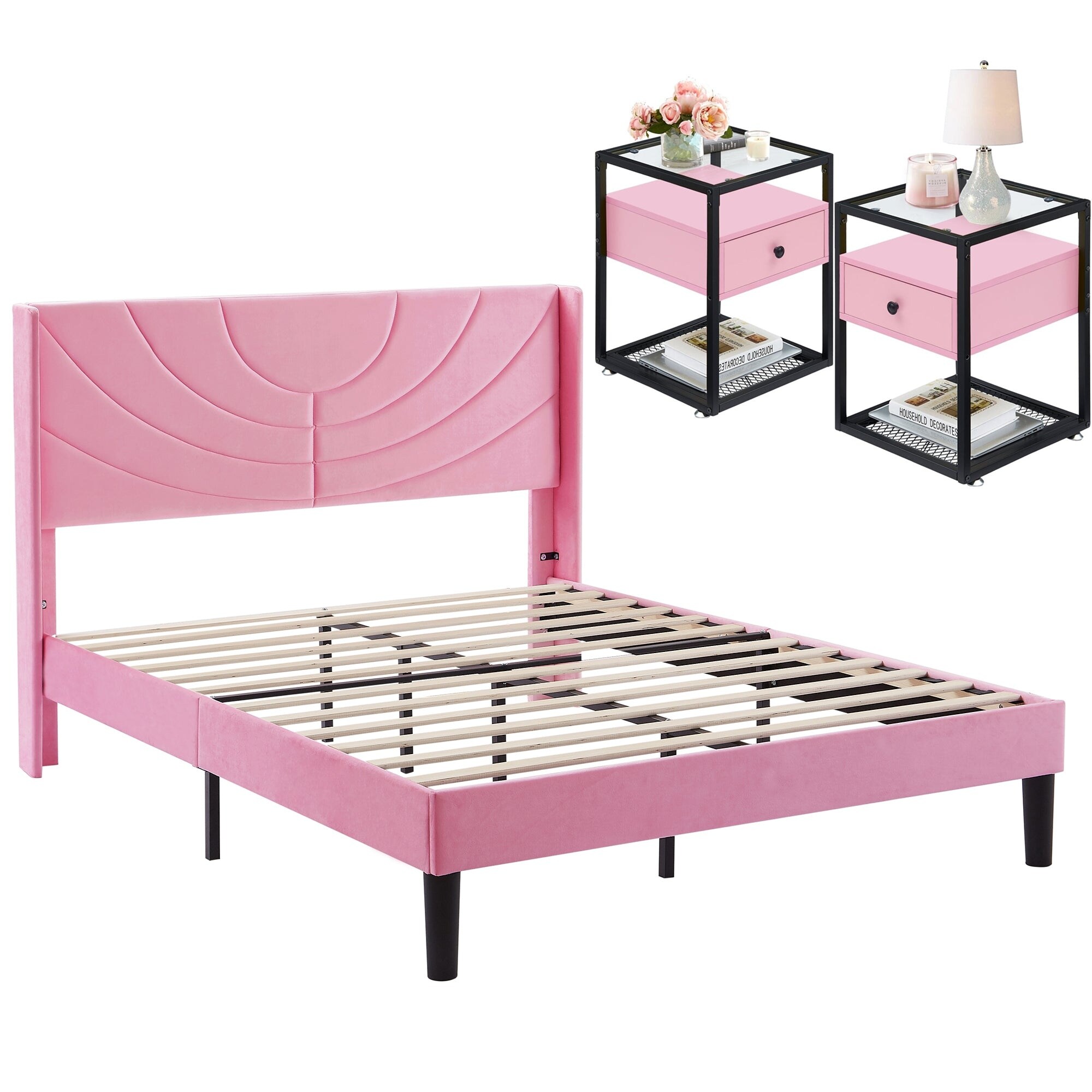 Taomika 3-pieces Bedroom Set Platform Bed and Nightstands Set of 2