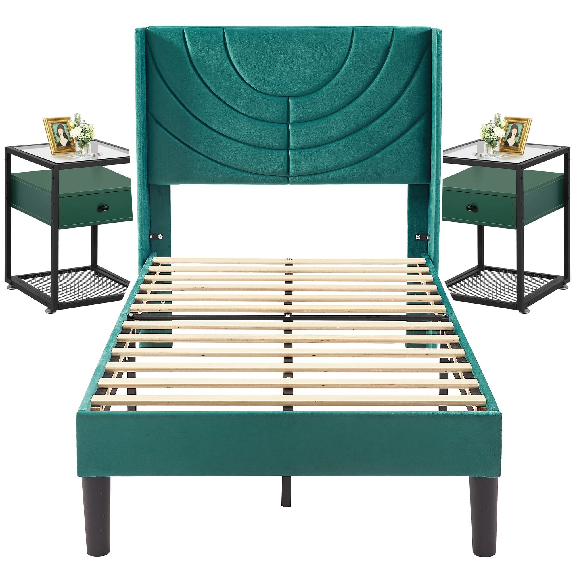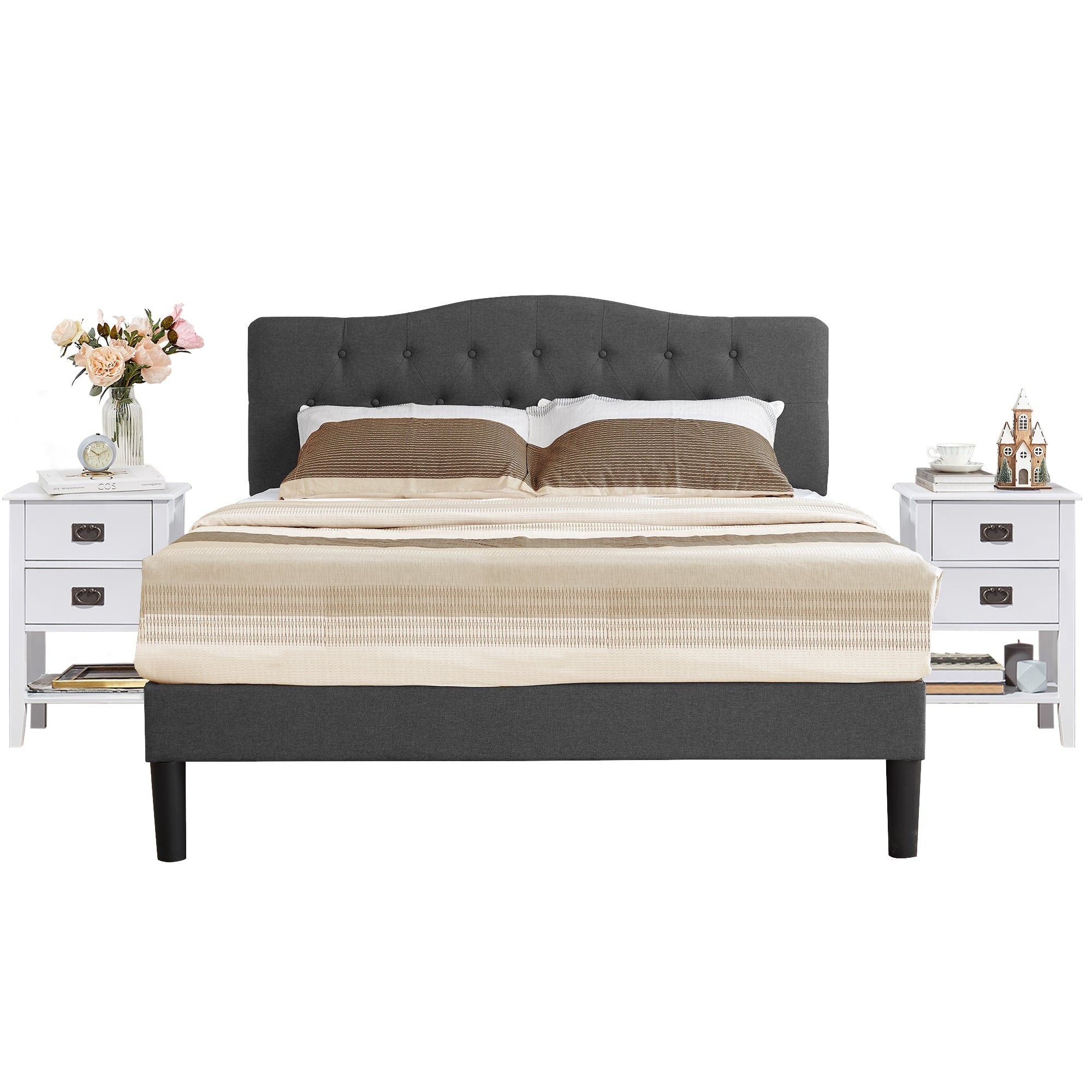 Bedroom Sets, 15 Style Options, 3-pieces Bedroom Set with Height Adjustable Upholstered Bed and Nightstands Set of 2-VECELO