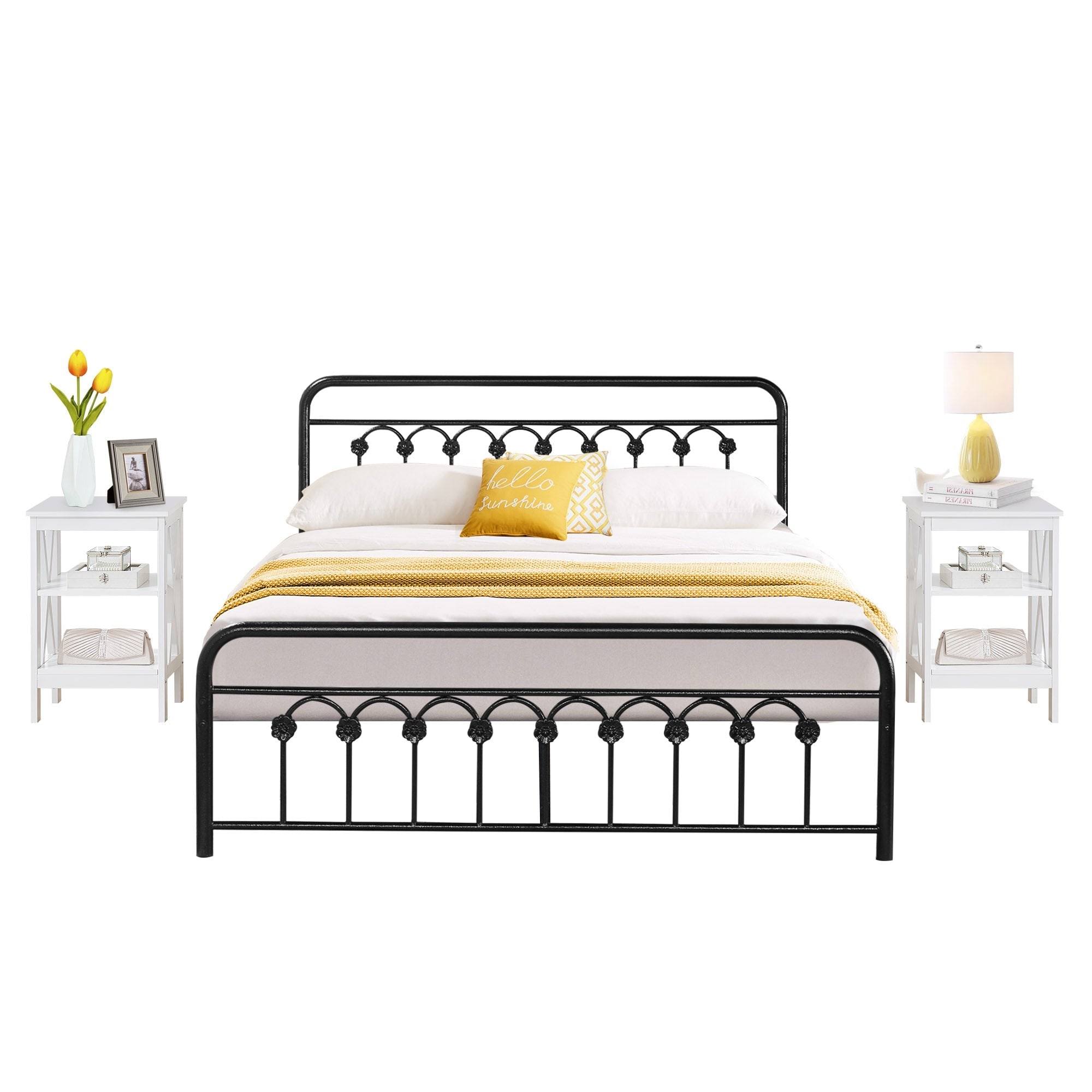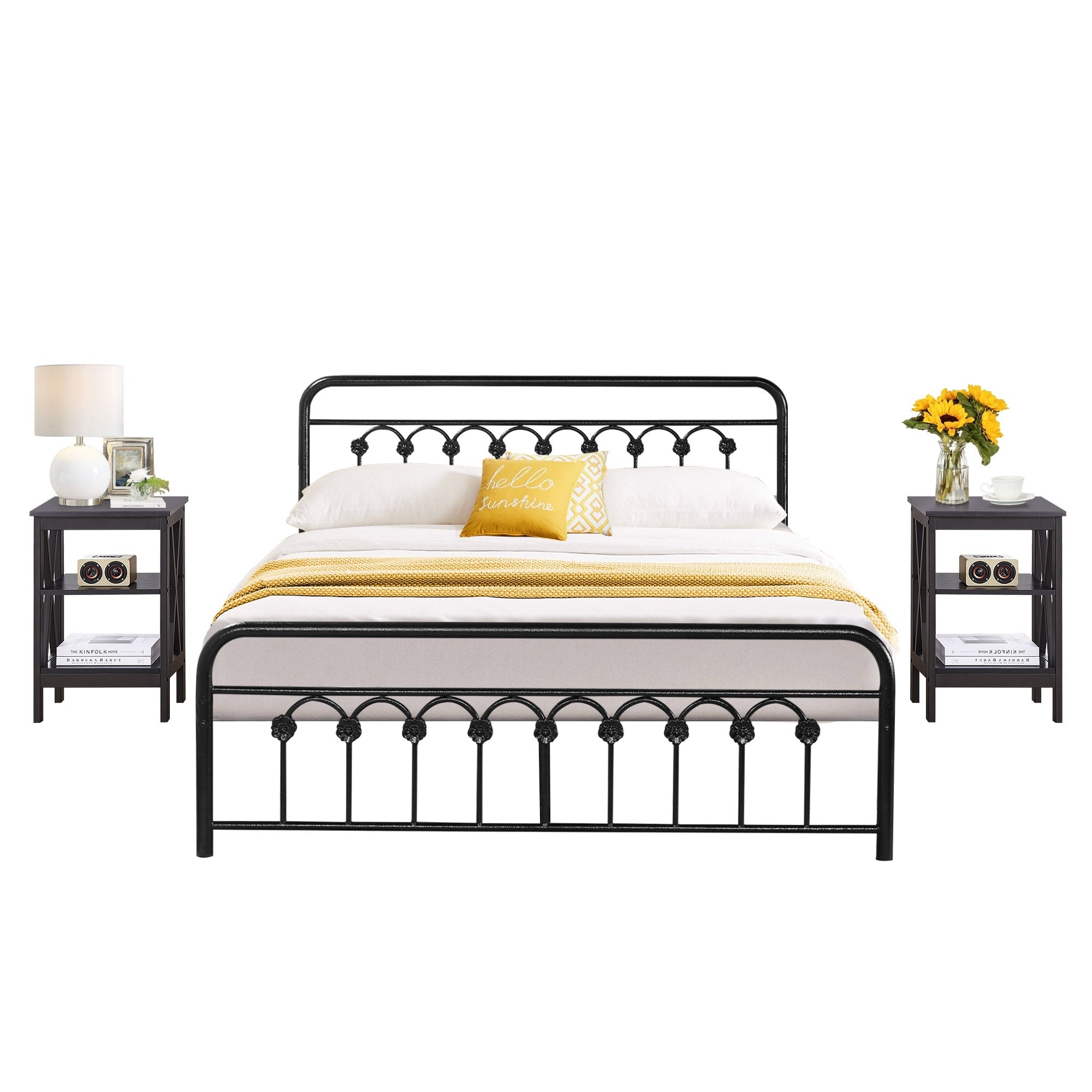 Taomika 3-pieces Classic Bedroom Set with Black Bed Frame and Nightstands