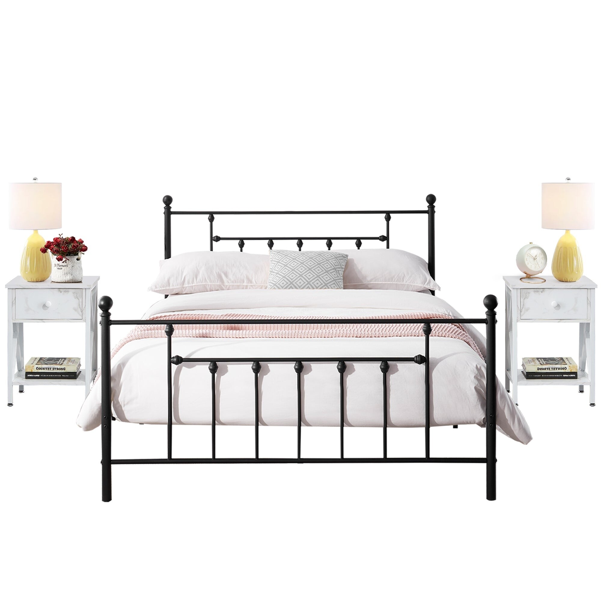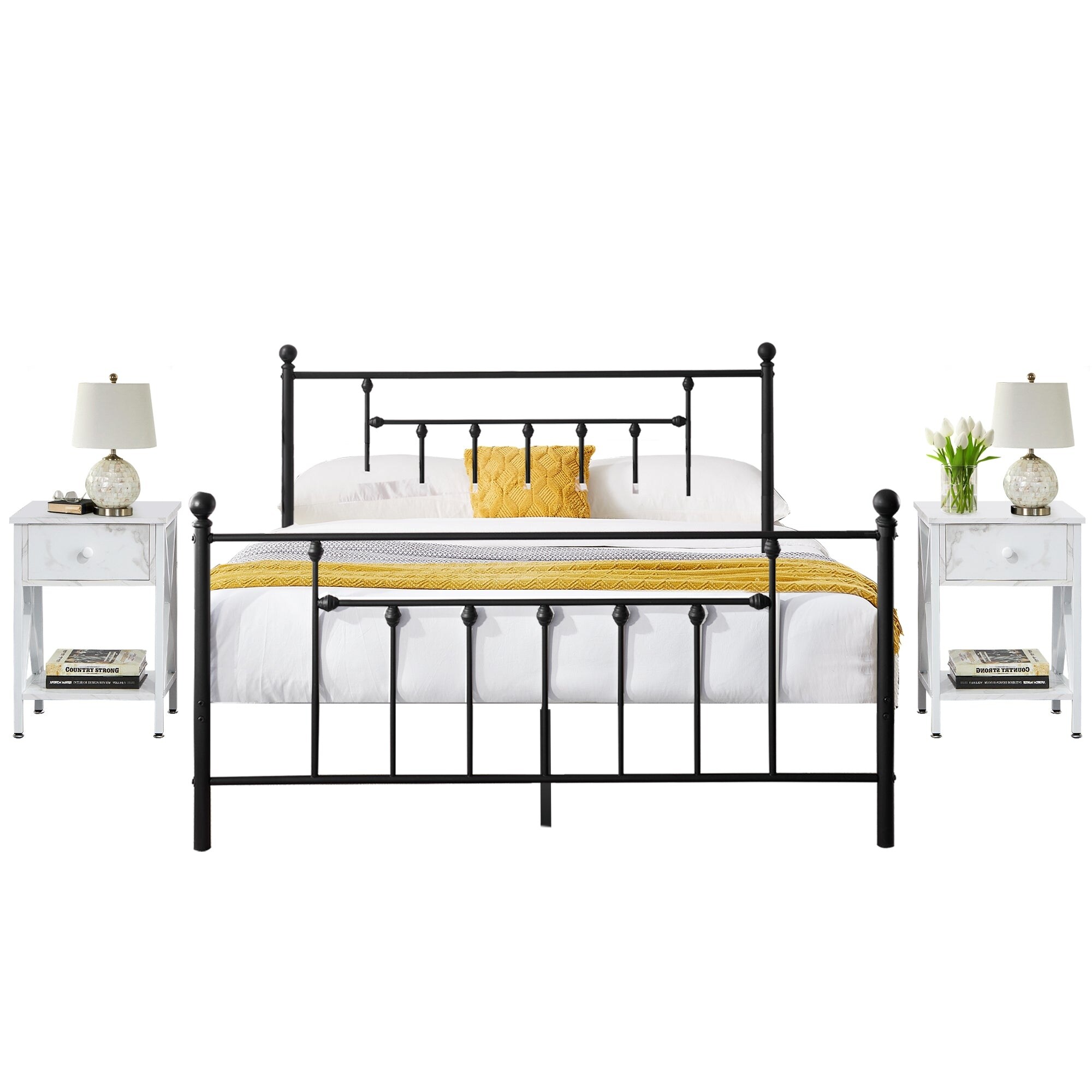 Taomika 3 Pieces Metal Bedroom Sets with Black Bed Frame