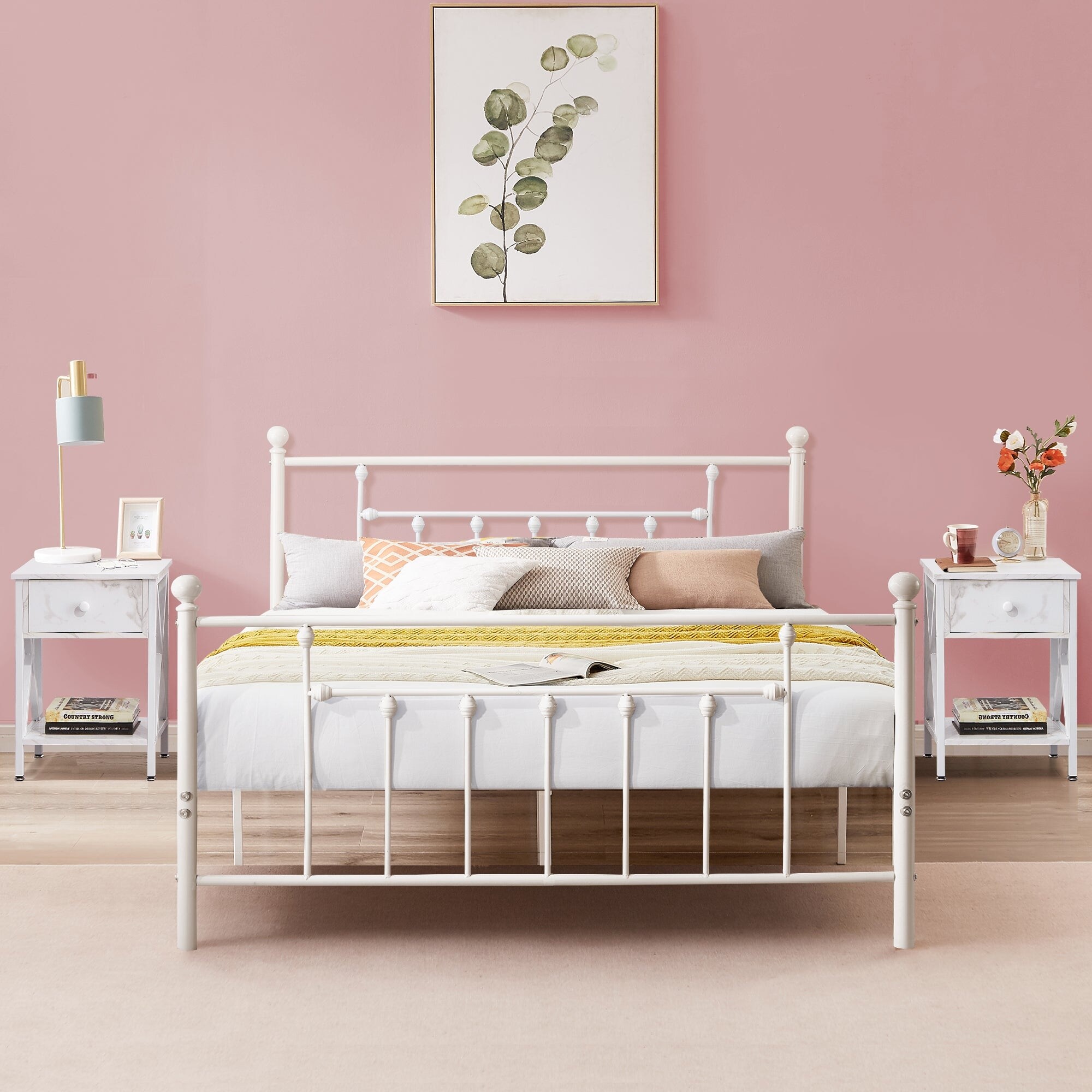 Victorian 3-Piece White Bedroom Set Bed Frame and White Nightstand Set of 2