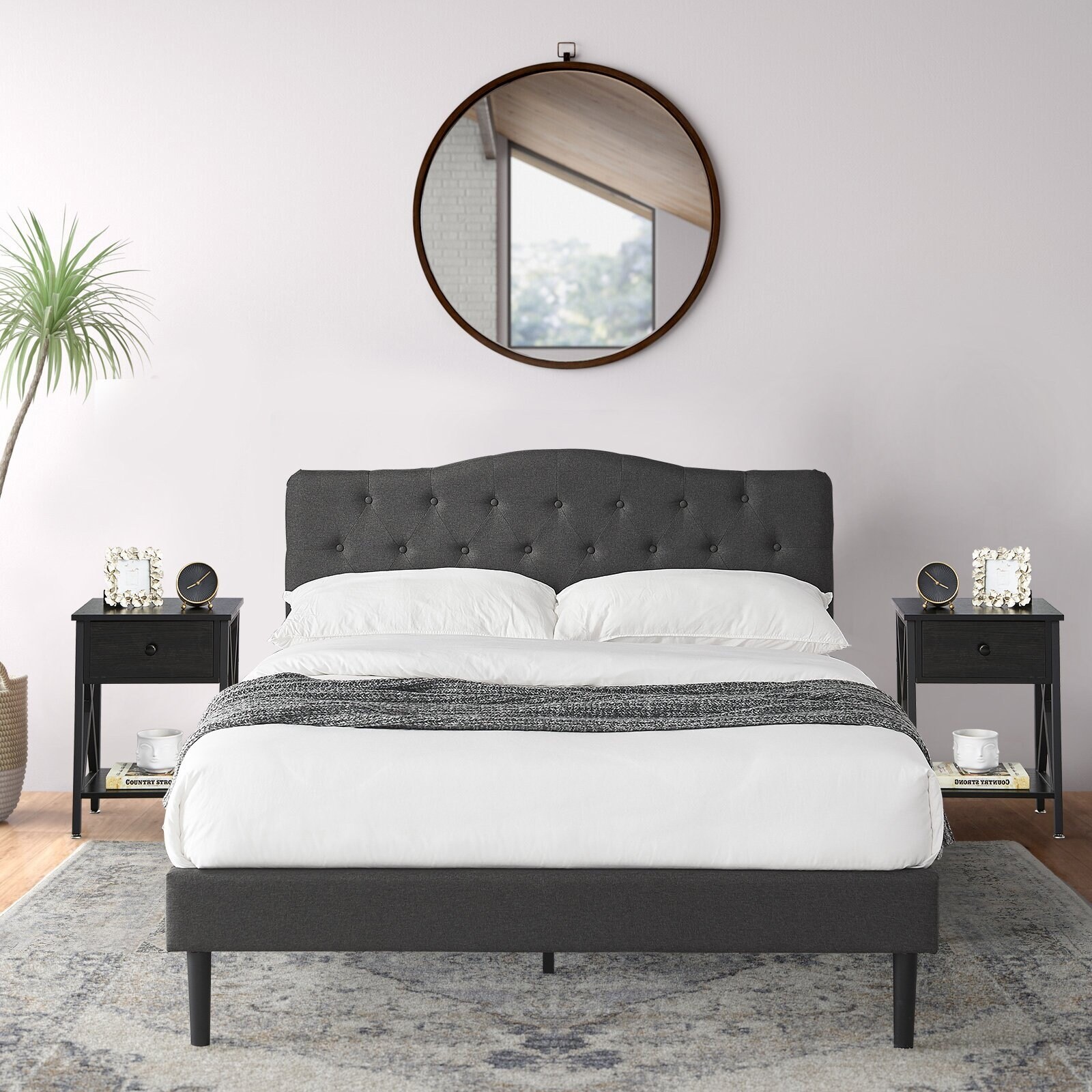 Taomika 3-Pieces Bedroom Set with Dark Grey Tufted Upholstered Bed