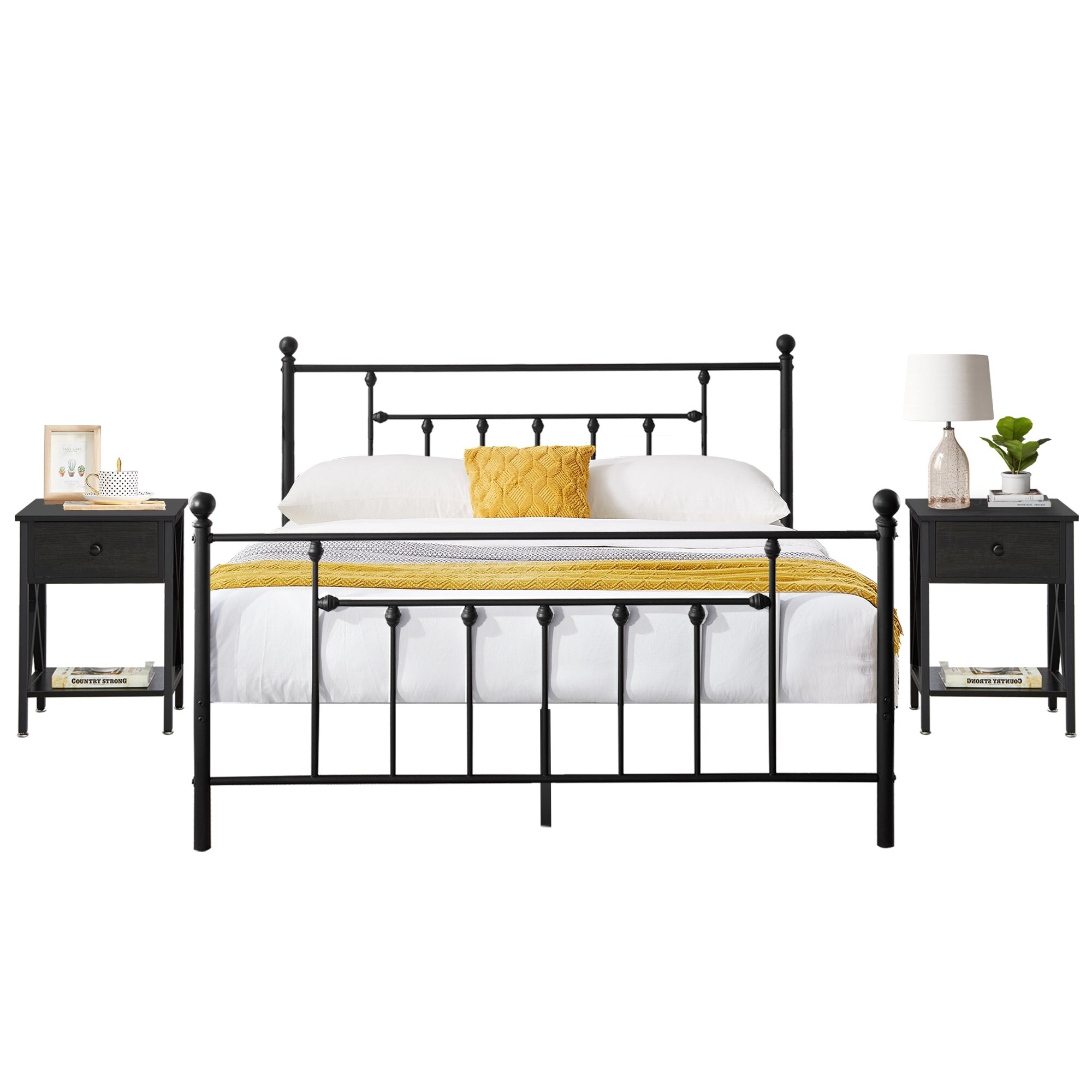 Taomika 3-pieces Bedroom Set with Metal Bed Frame and Wood Nightstands