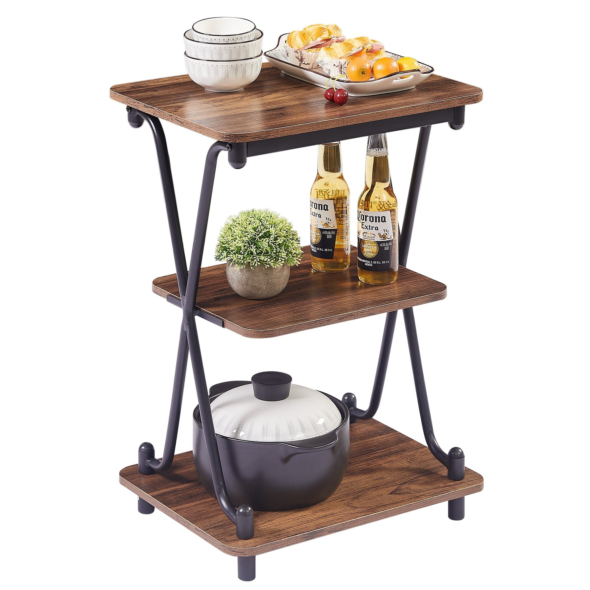 Modern 3-Tier Bedside/End Table with Storage Shelf, X-Shaped Design Nightstand and Sofa Side End Table