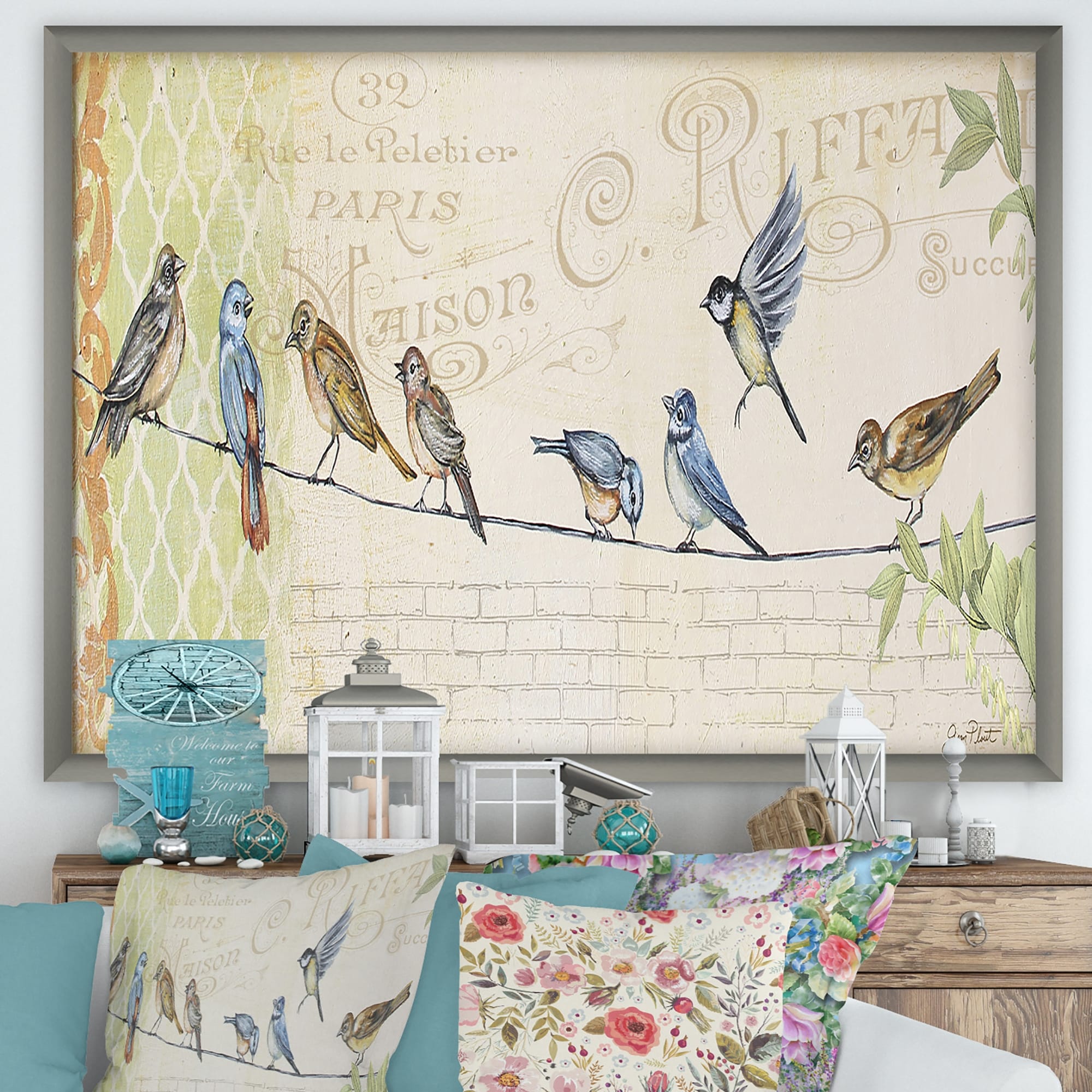 Designart "Birds Gathered on Wire Paris III" Cottage Framed Art Print