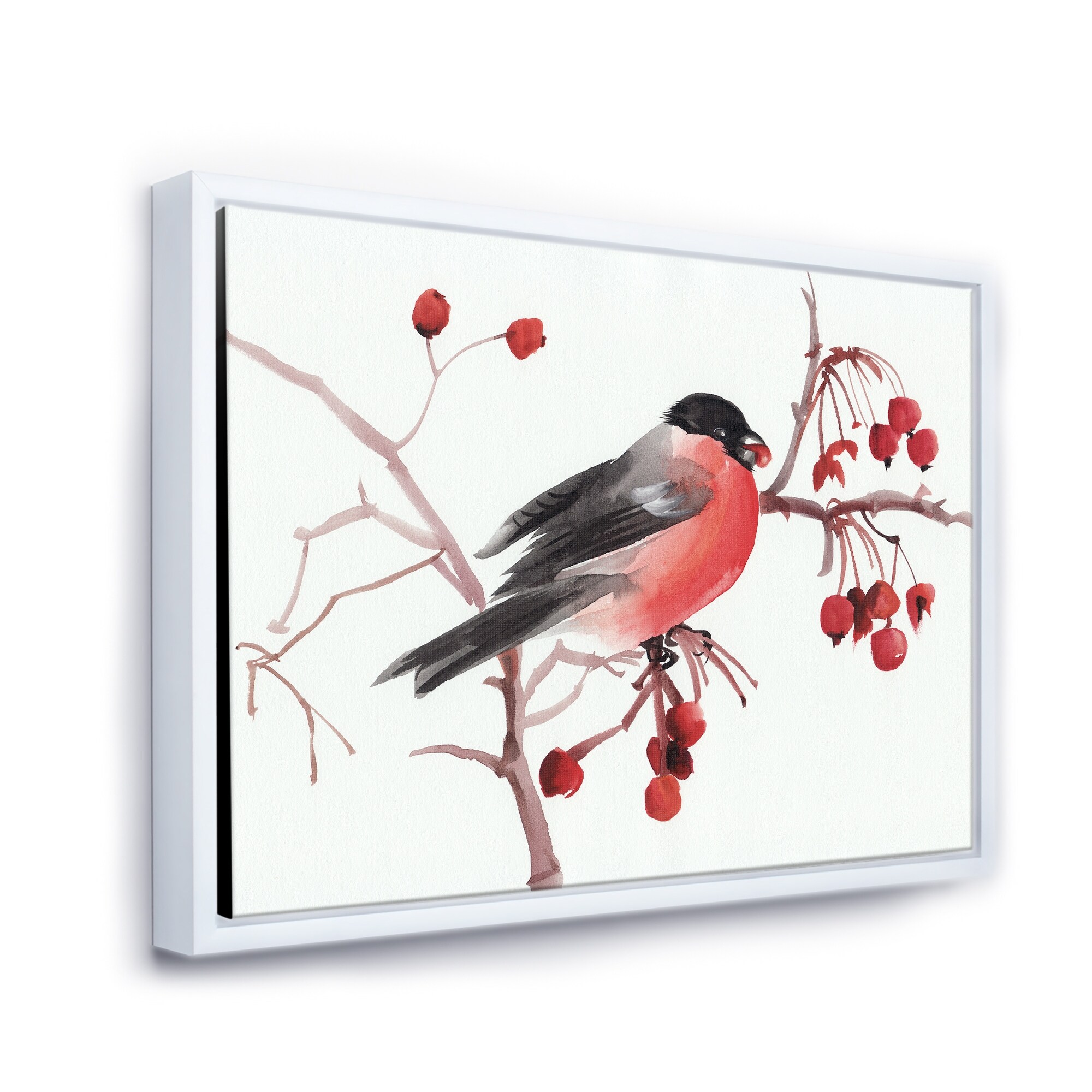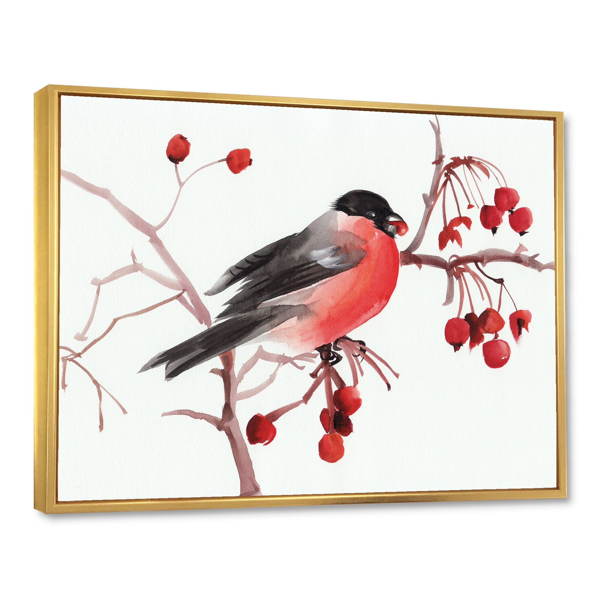 Designart "Bullfinch Bird on A Branch" Traditional Framed Canvas Wall Art Print