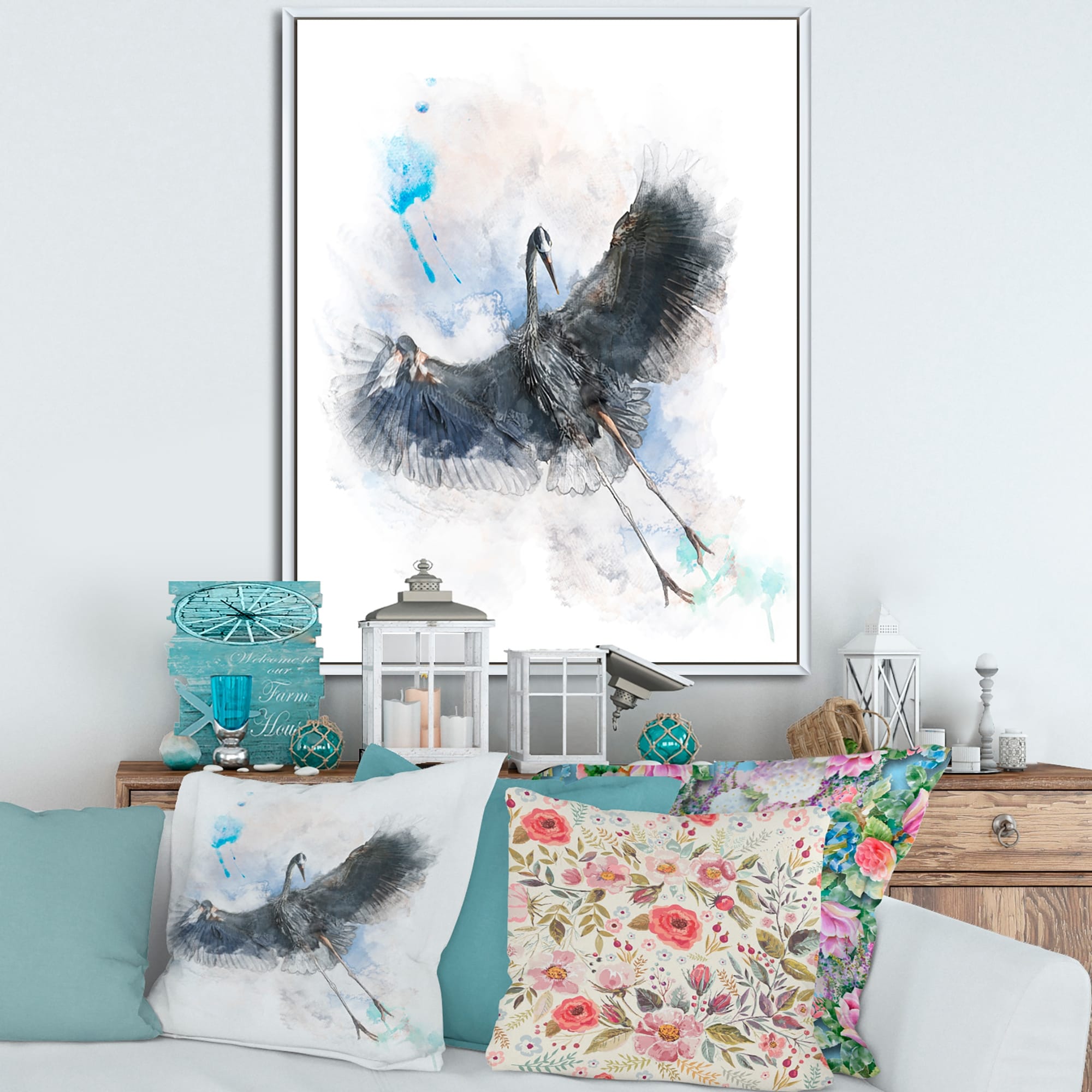 Designart "Great Blue Heron Bird" Farmhouse Framed Canvas Wall Art Print