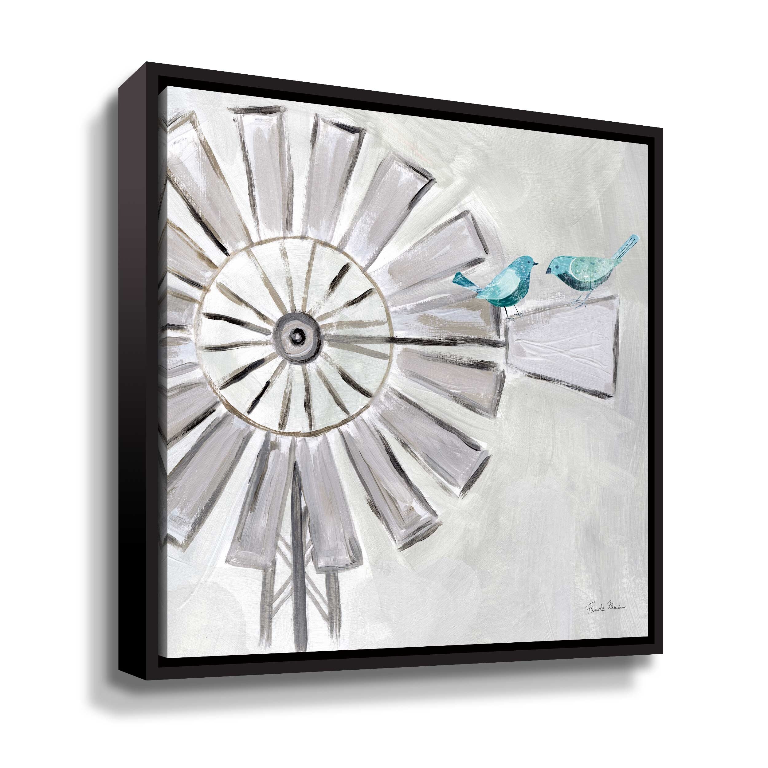 Farmhouse Windmill With Birds Gallery Wrapped Floater-framed Canvas by Farida Zaman
