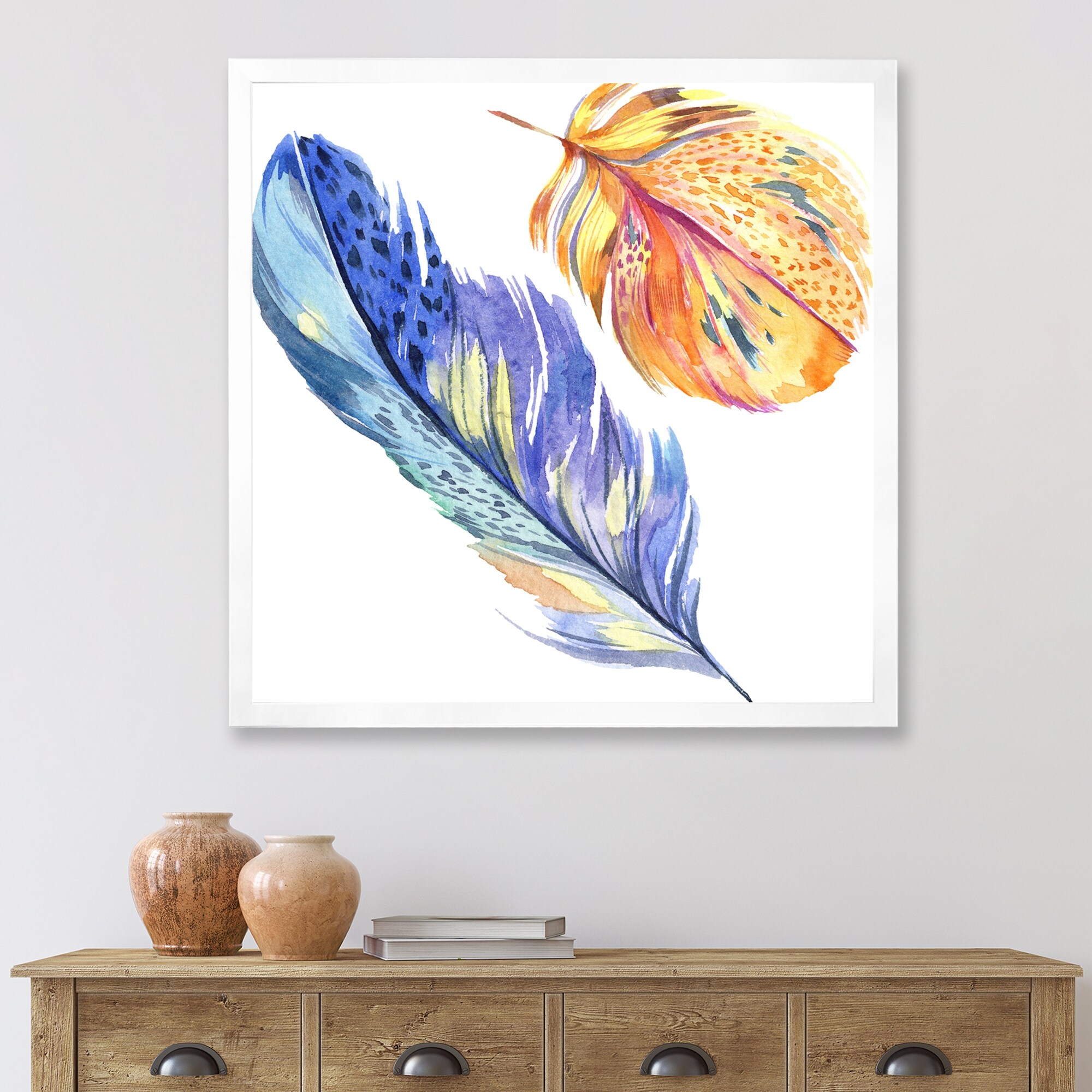Designart "Colorful Blue Bird Feather From Wing" Bohemian & Eclectic Framed Art Print