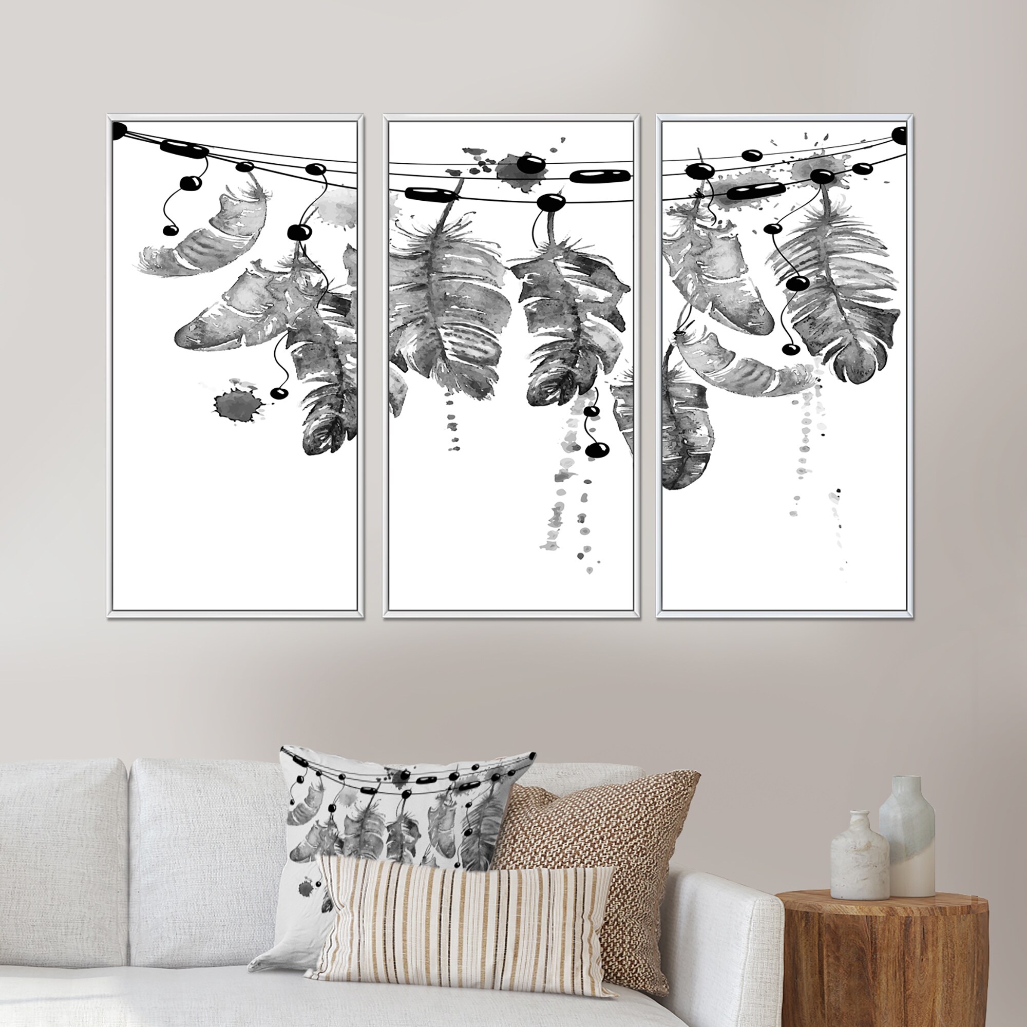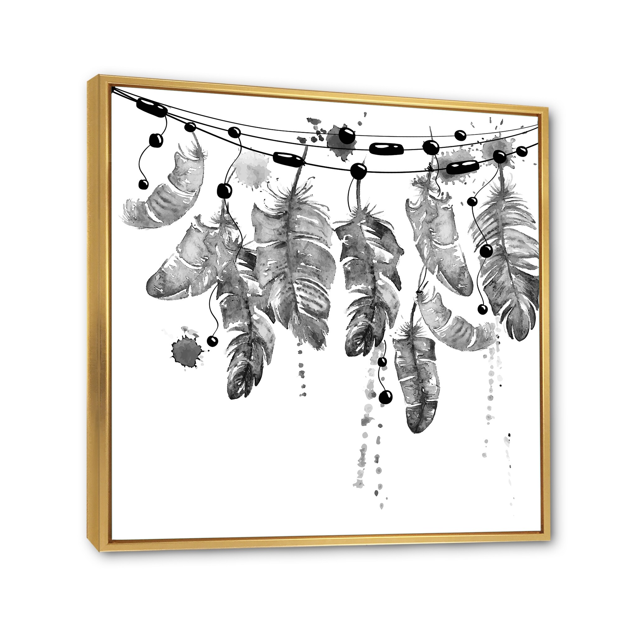 Designart "Hanging Bird Feathers" Bohemian & Eclectic Framed Canvas Wall Art Print