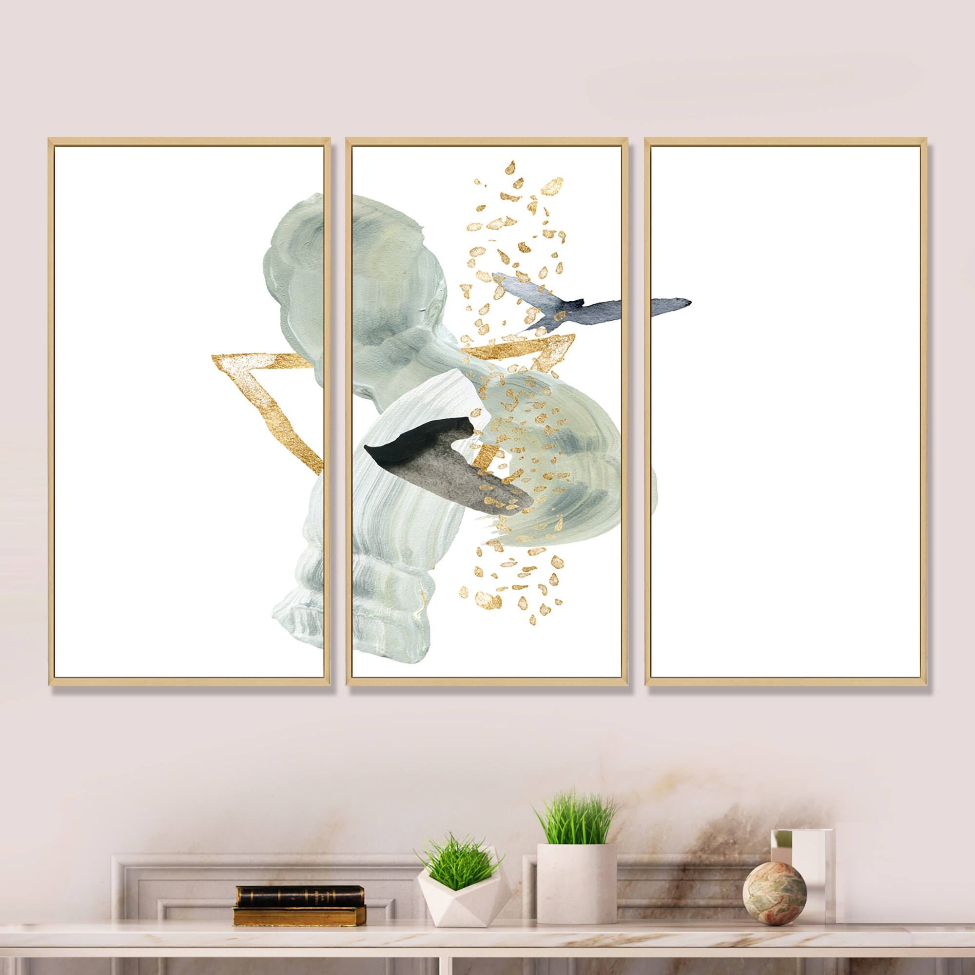 Designart "Abstract Golden Mountain With Moon and Bird" Modern Framed Wall Art Set of 3 - 4 Colors of Frames