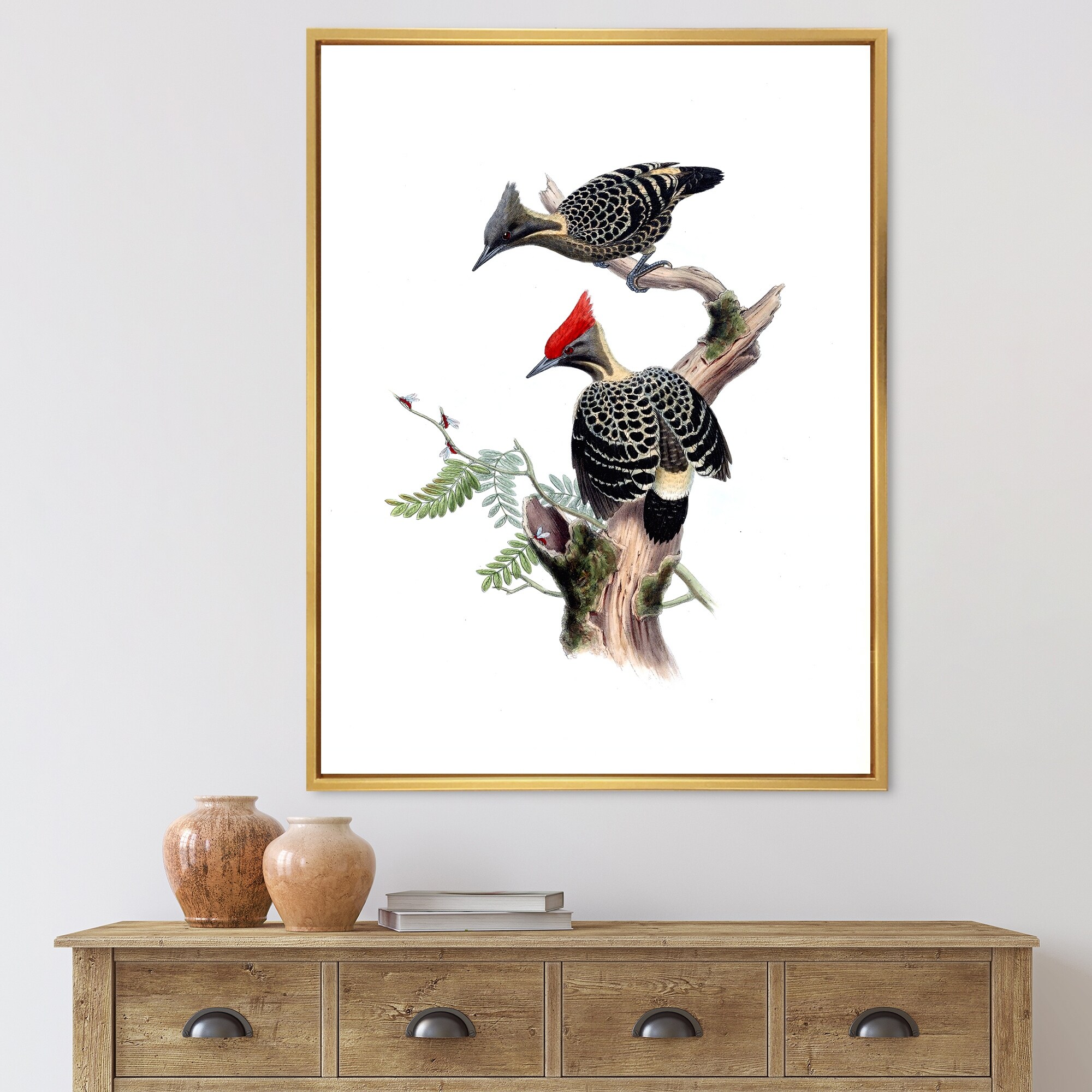 Designart "Vintage Birds in the Wild VI" Traditional Framed Canvas Wall Art Print