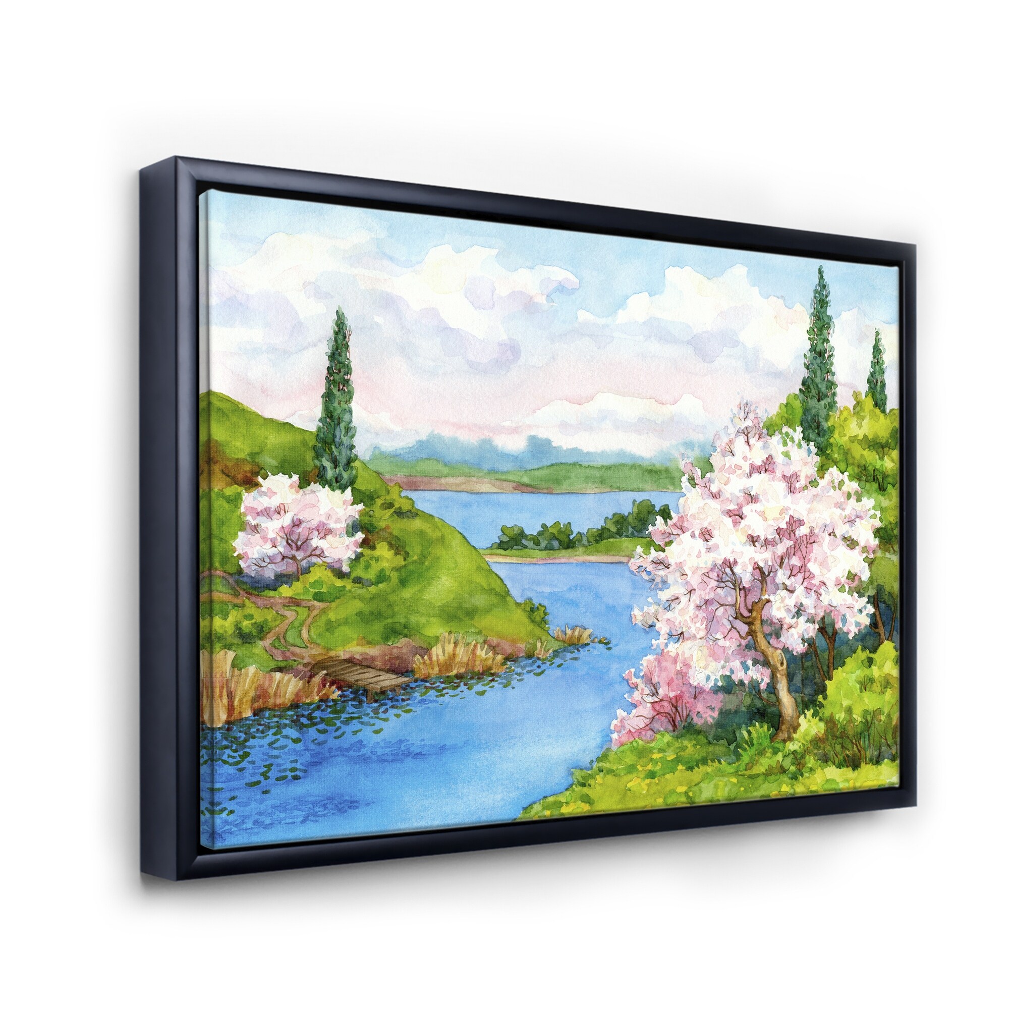 Designart "Spring Landscape Under A Bright Blue Sky" Traditional Framed Canvas Wall Art Print