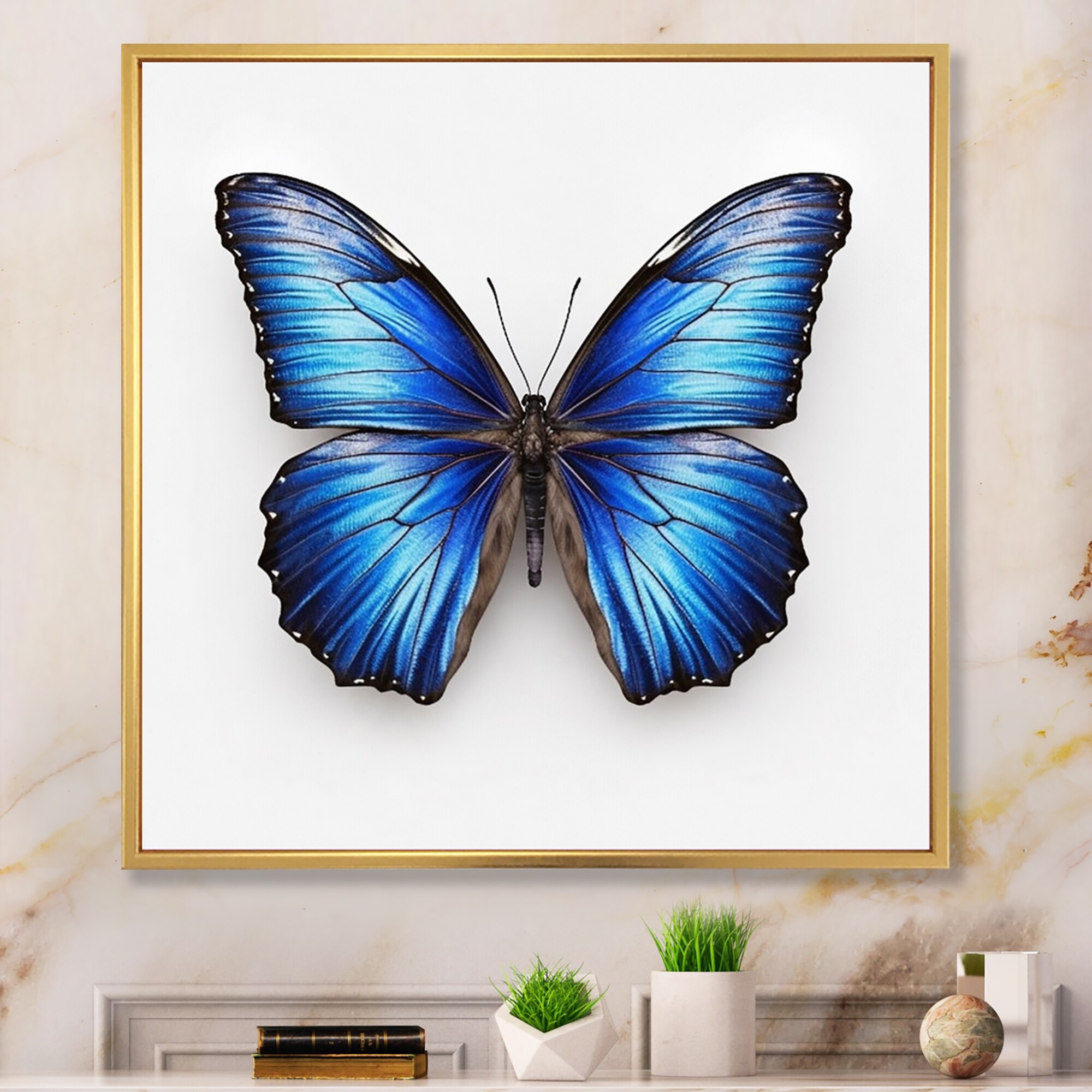 Designart "Vibrant Blue Butterfly II" Animals Butterfly Framed Canvas Wall Art