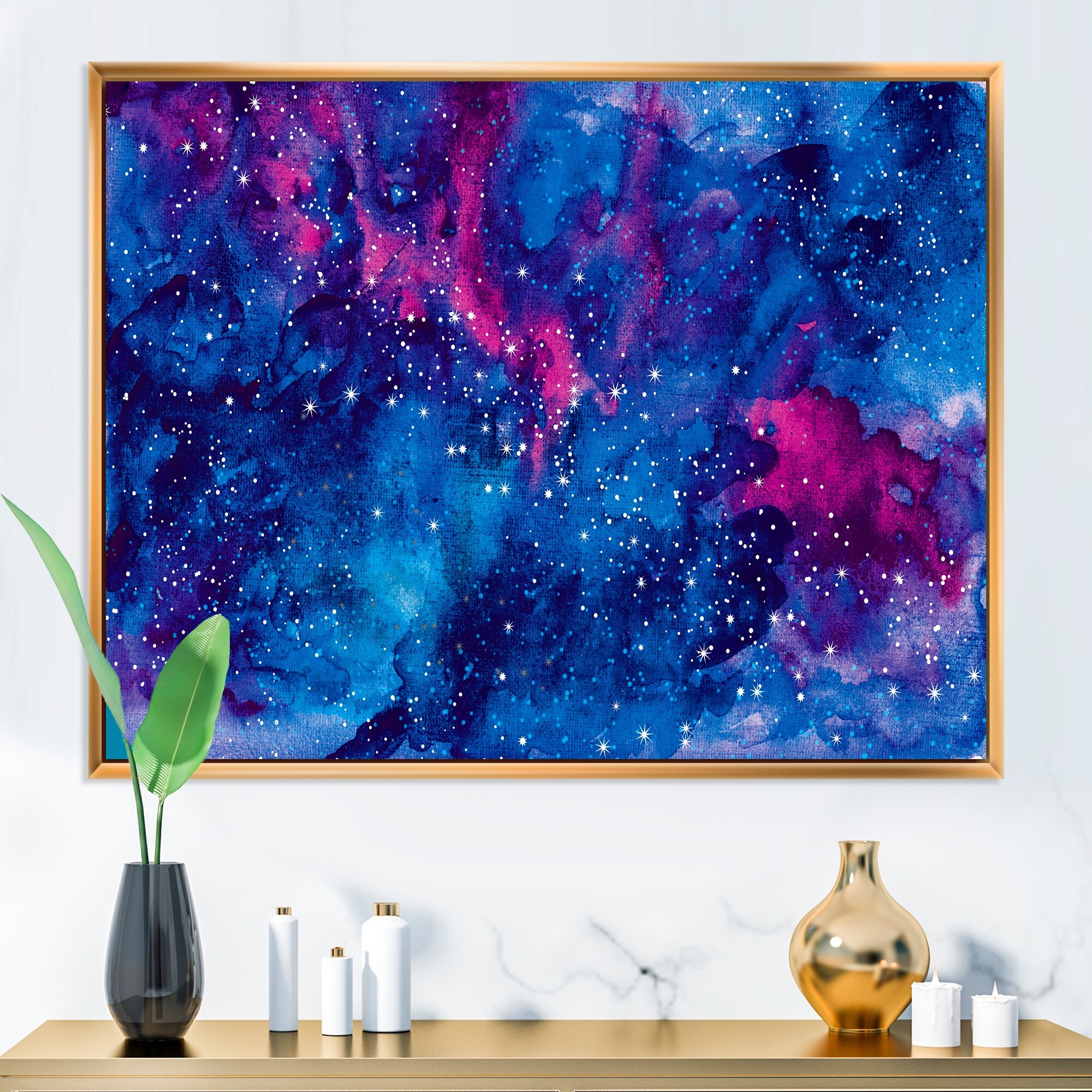 Designart "Blue Universe Space Storm II" Abstract Framed Canvas Art Print