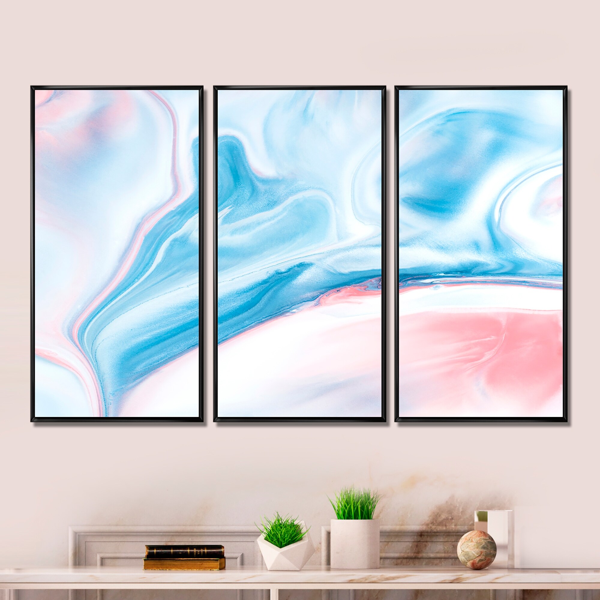 Designart "Blue And Pink Marble Ink Clouds V" Modern Framed Art Set of 3 - 4 Colors of Frames