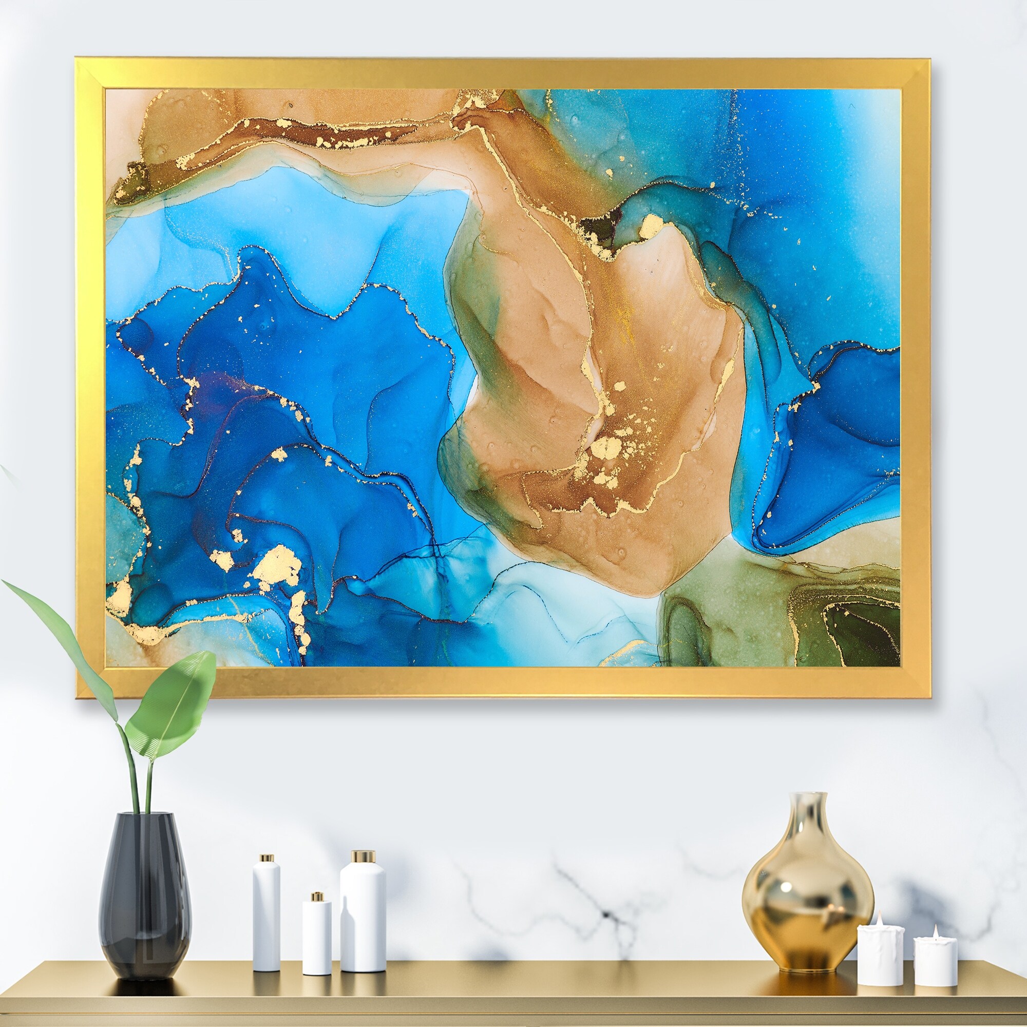 Designart "Brown And Blue Luxury Abstract Fluid Art I" Modern Framed Art Print