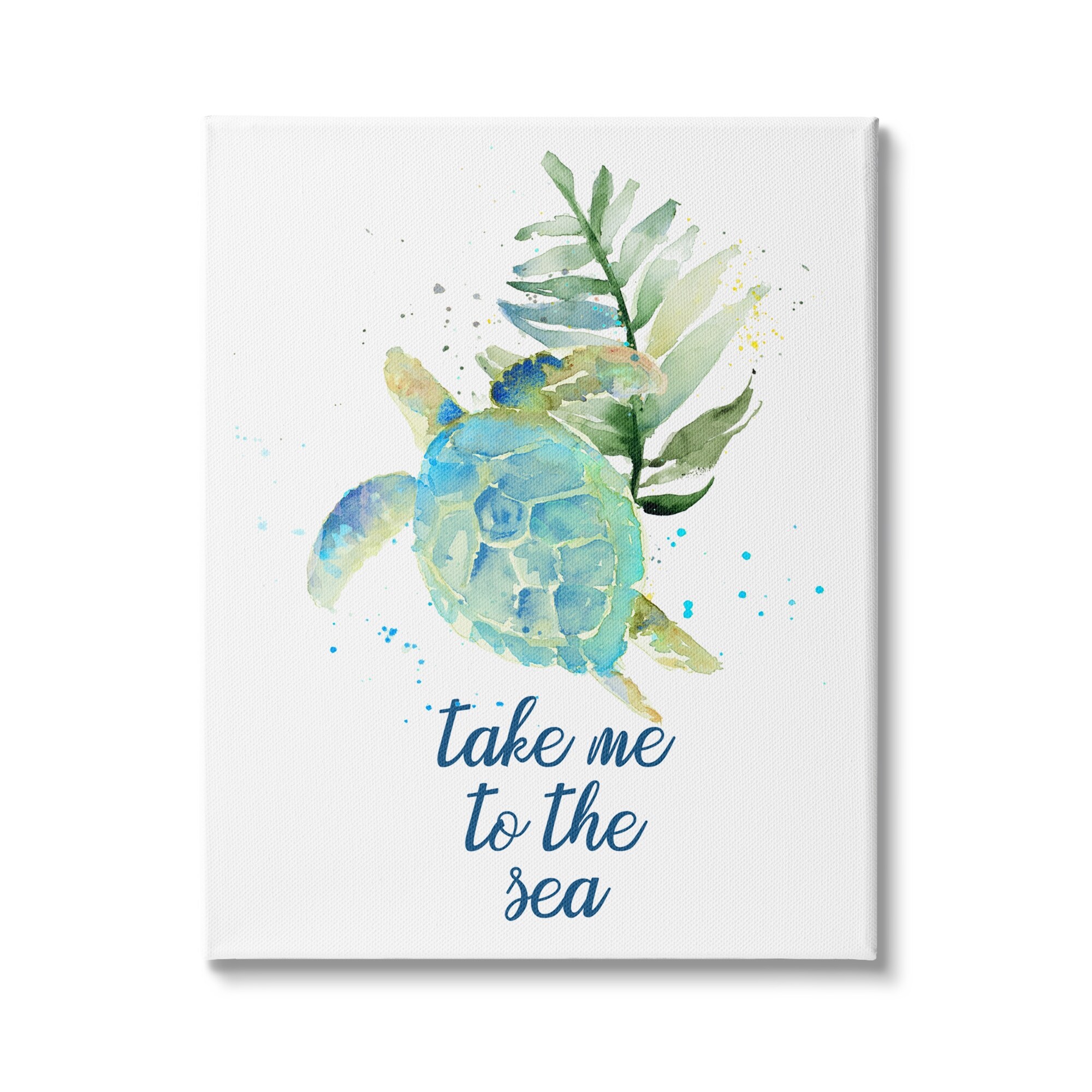 Stupell Industries Take Me to Sea Phrase Abstract Ocean Turtle Canvas Wall Art - Blue