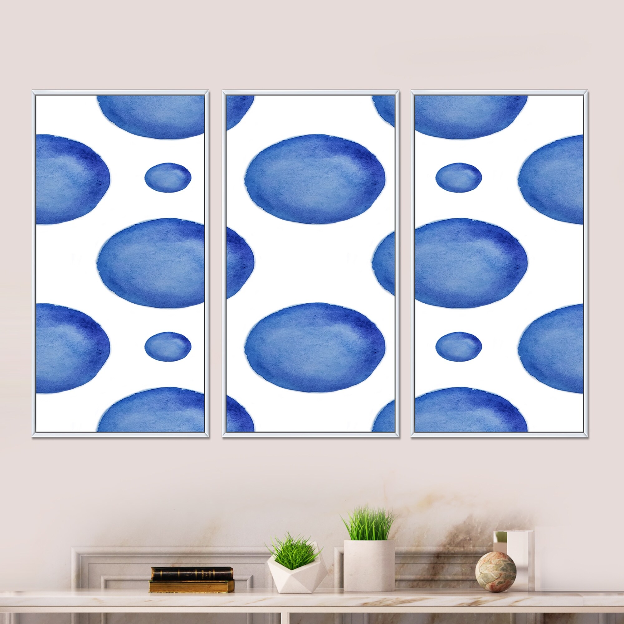 Designart "Small And Big Blue Circles on White I" Modern Framed Art Set of 3 - 4 Colors of Frames