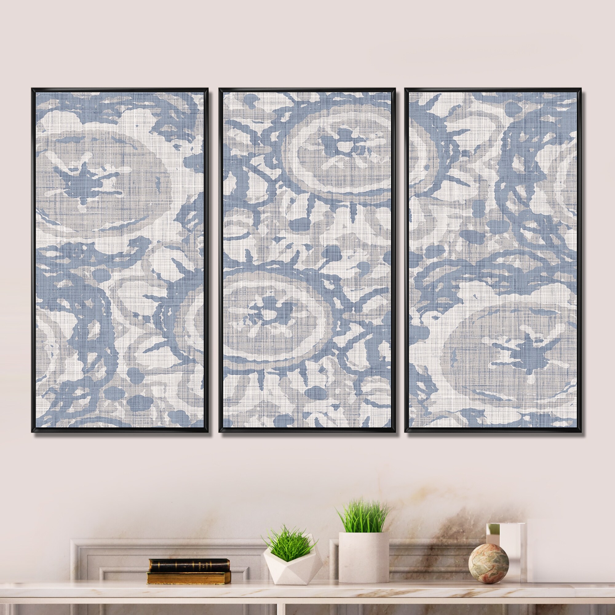 Designart "Vintage Blue Farmhouse Flower III" Modern Framed Canvas Wall Art Print Set of 3 - 4 Colors of Frames