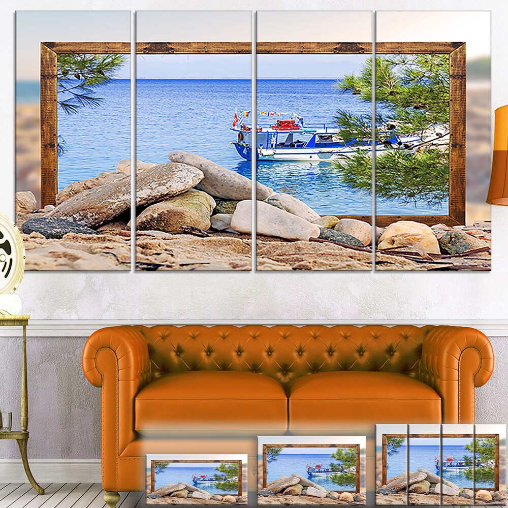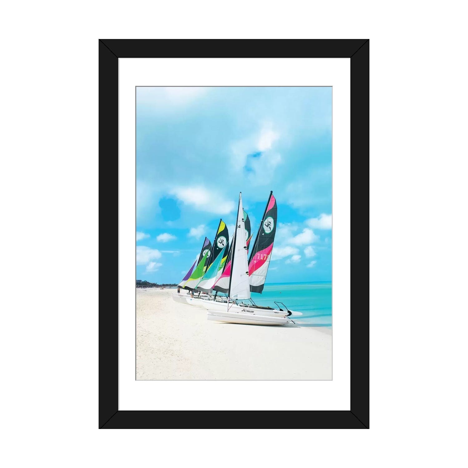 Framed Boat in Ocean - Seashore Art Canvas Print