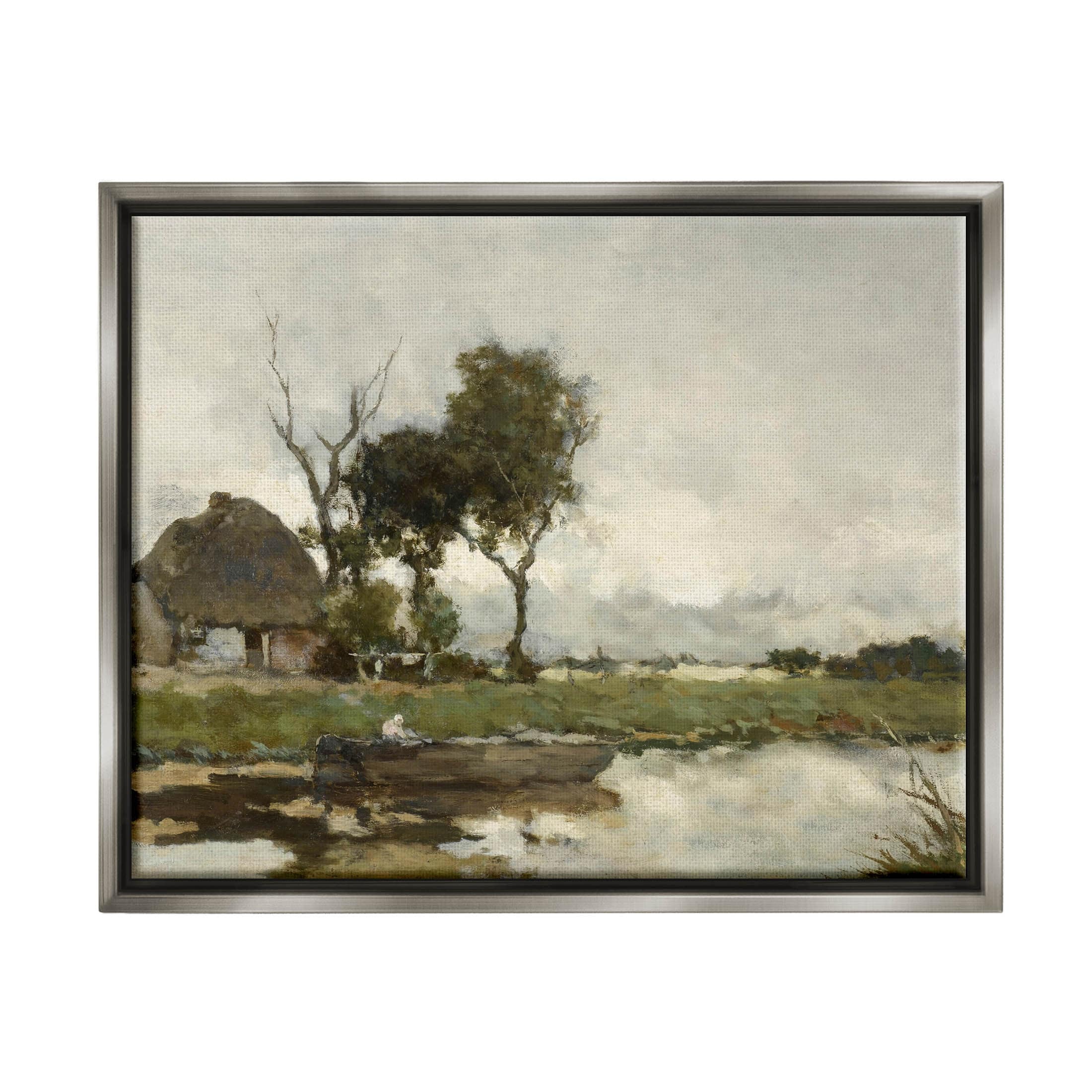 Stupell Industries Boat on River Classic Scene Floater Canvas Wall Art by Lettered and Lined