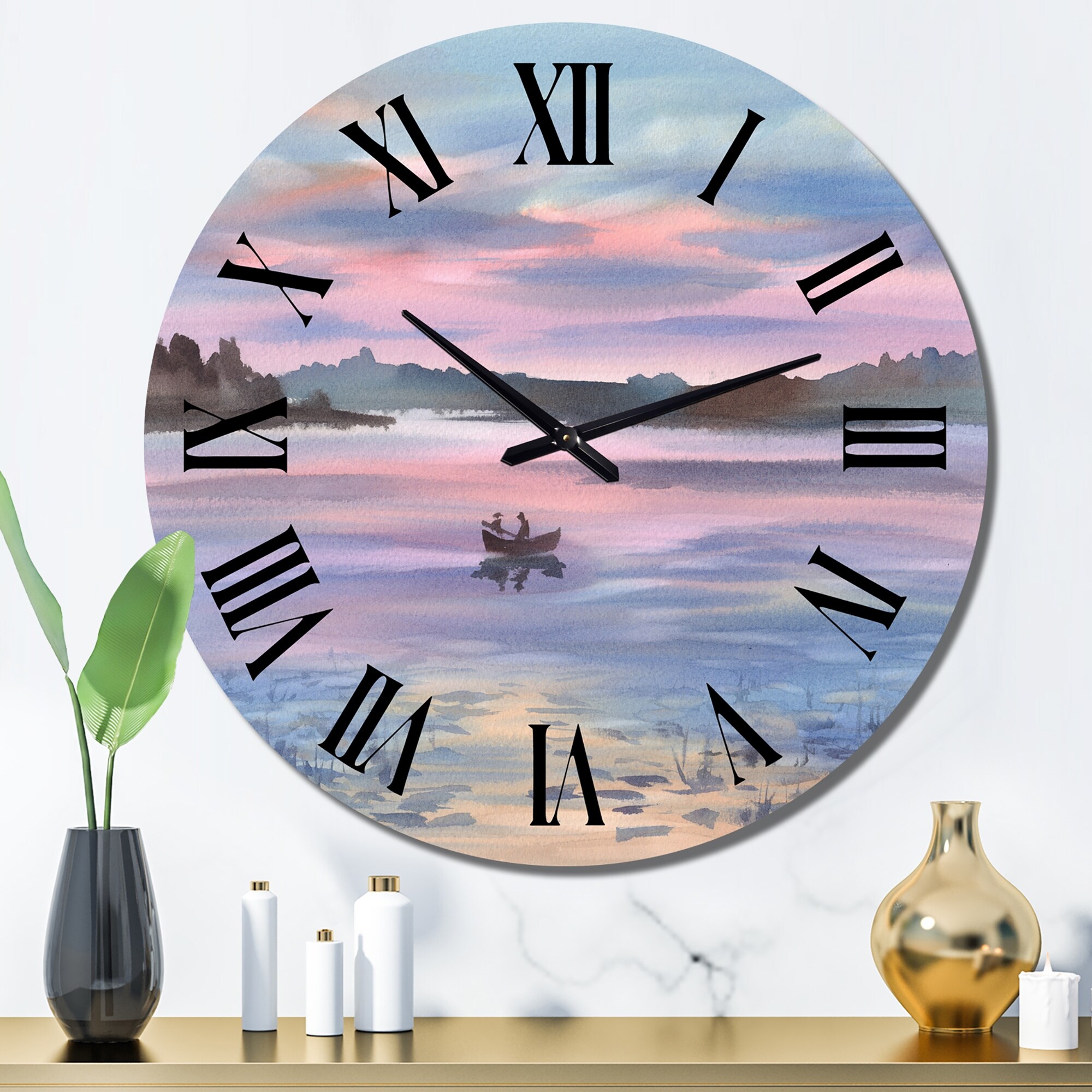 Designart 'Pastel Impression of Lonely Boat on Lake in Gentle Evening Light' Farmhouse wall clock