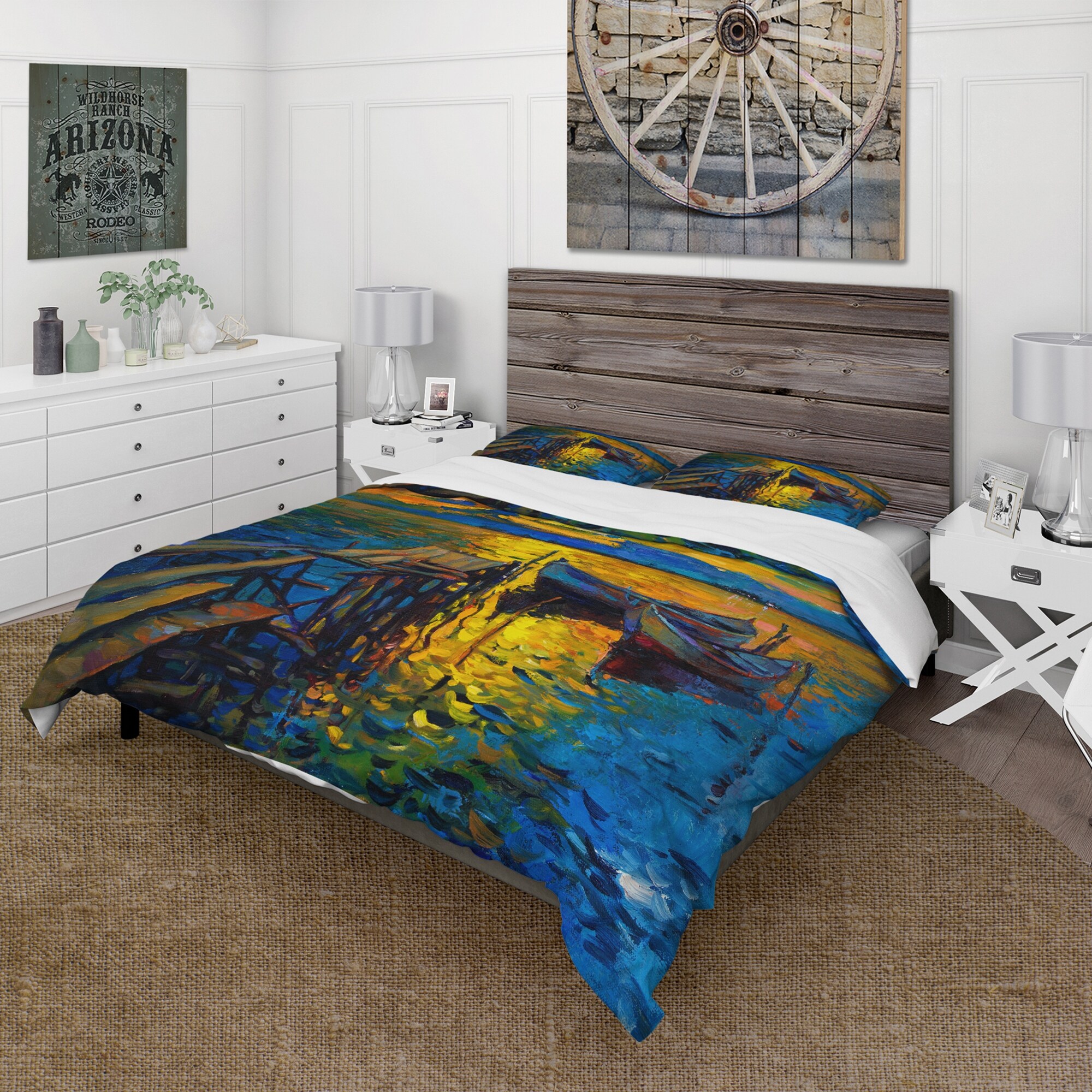 Designart 'Boat During Evening Glow At the Lake II' Nautical & Coastal Duvet Cover Set