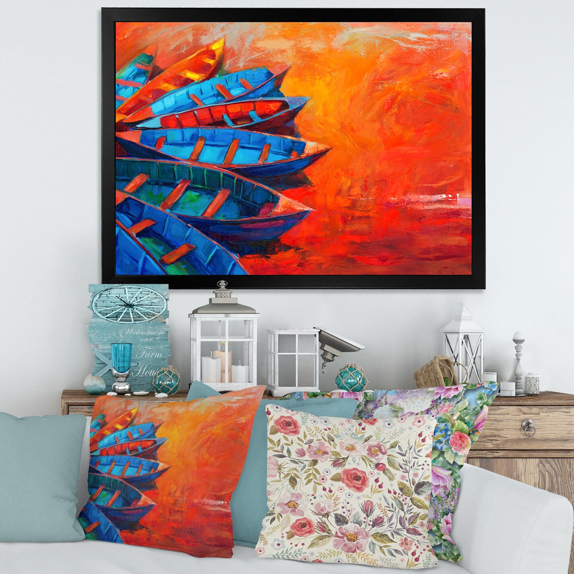 Designart "Little Boats Arriving the At Shore During Sunset III" Modern Framed Canvas Wall Art Print