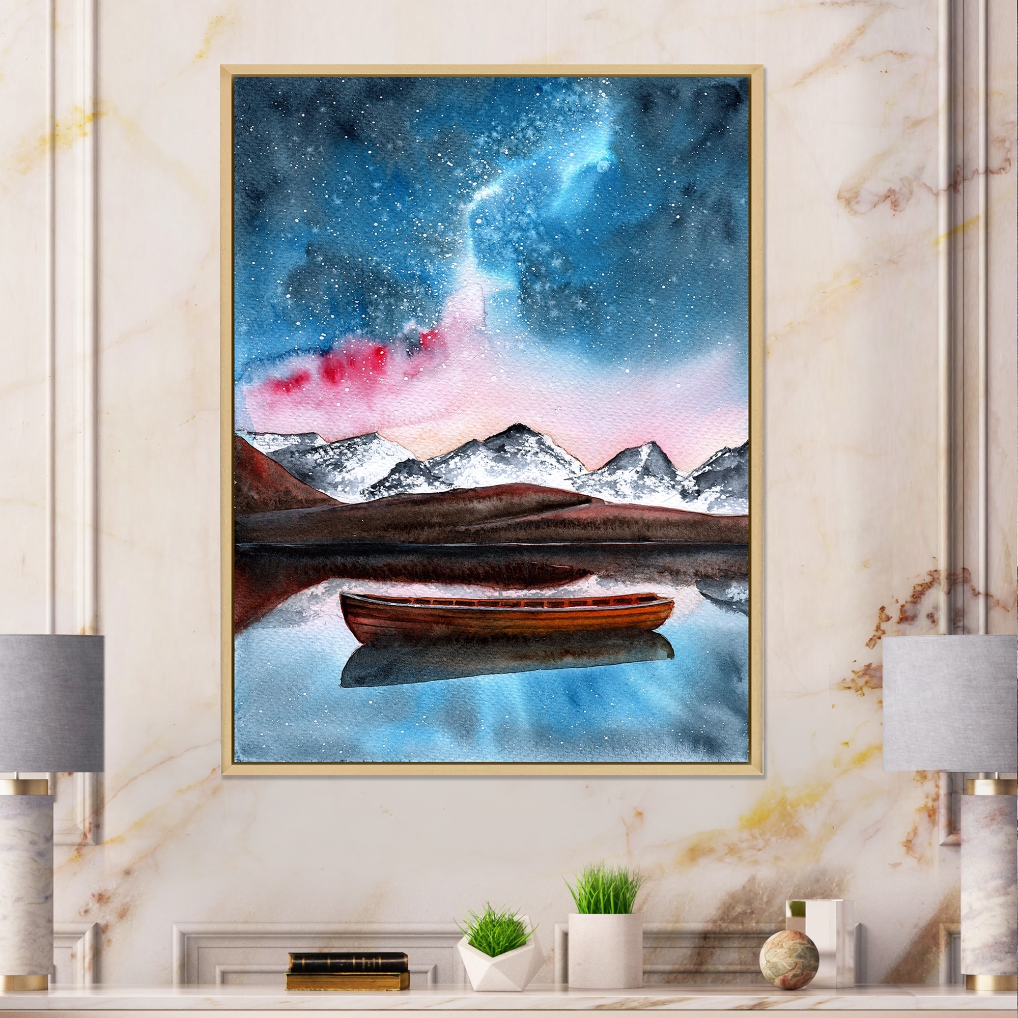 Designart "Landscape With A Boat Reflecting in Mountain Lake" Traditional Framed Canvas Wall Art Print