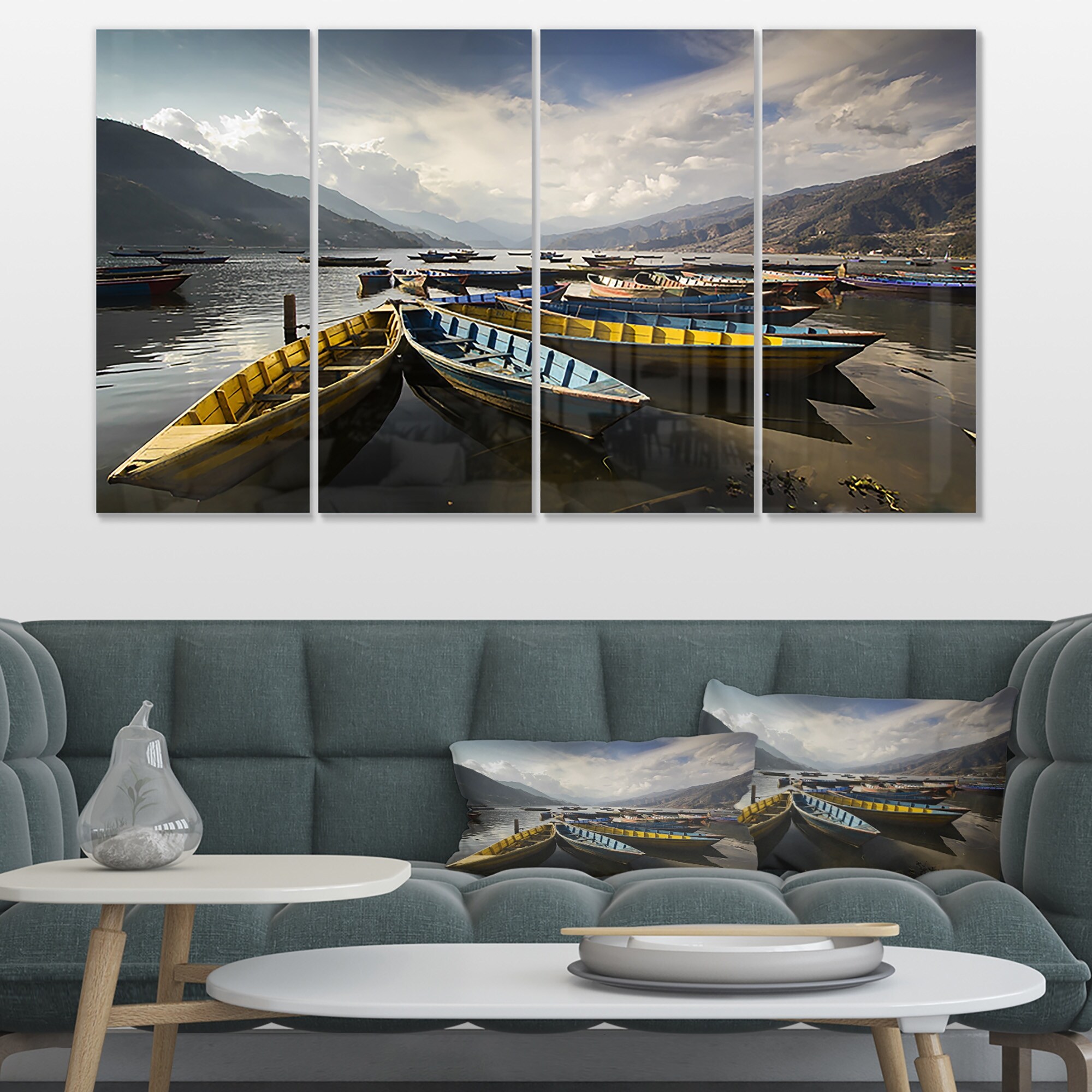 Designart "Pokhara Lakeside Boats" Boat Canvas Art Print
