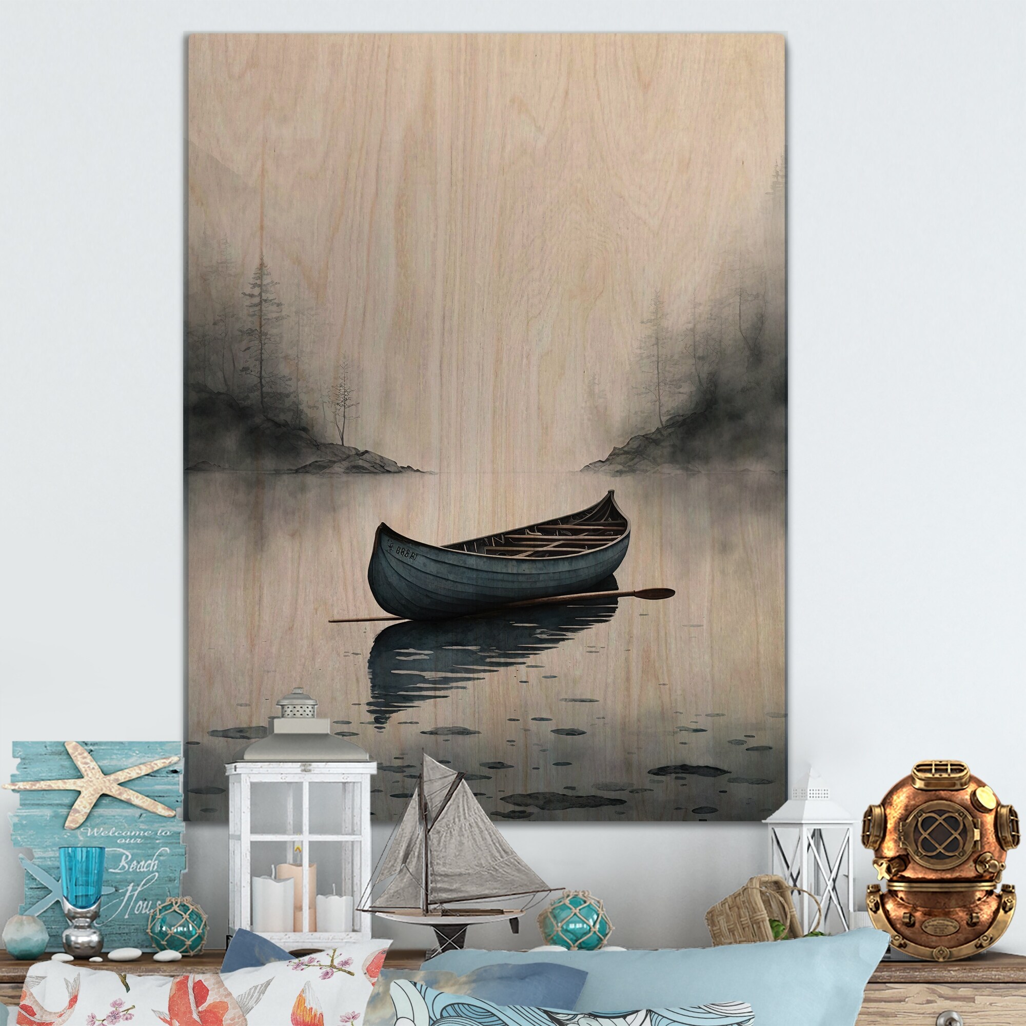 Designart 'Canoe On the Lake I' Coastal Boat Wood Wall Art - Natural Pine Wood