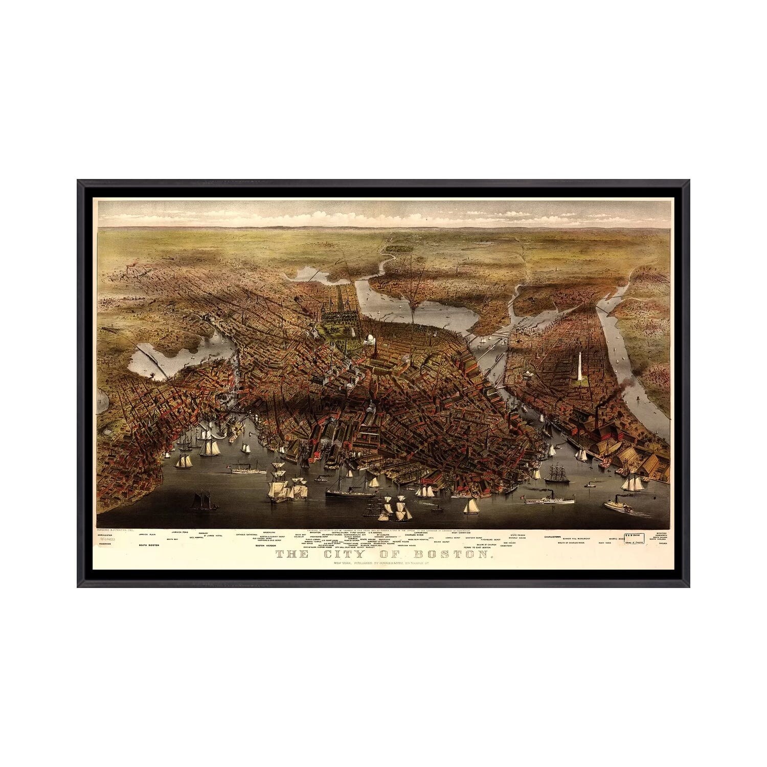 iCanvas "Boston Map, 1873" by Currier & Ives Framed